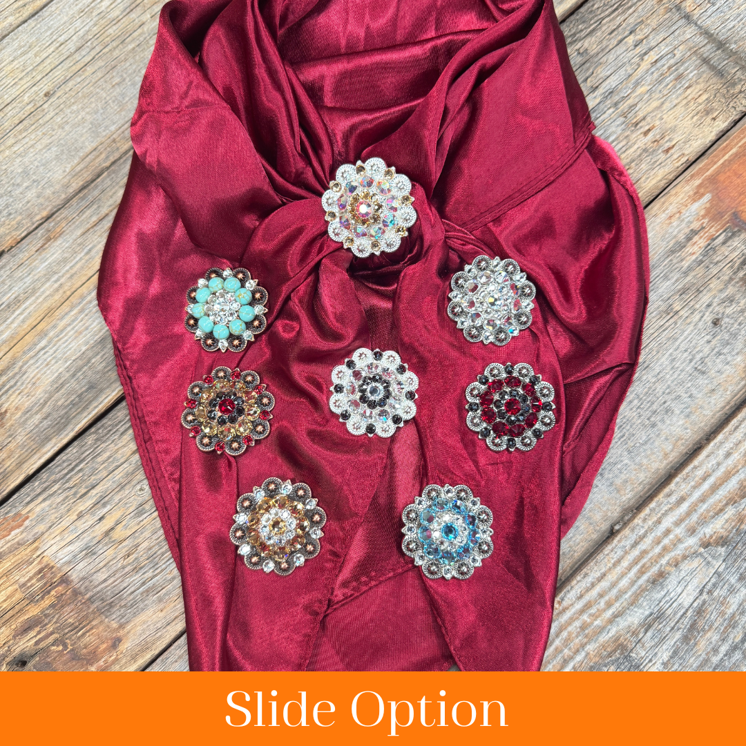 35X35" Solid Burgundy Wild Rag / Scarf WRS14 - Crystal Concho Wild Rag Slides - Assorted