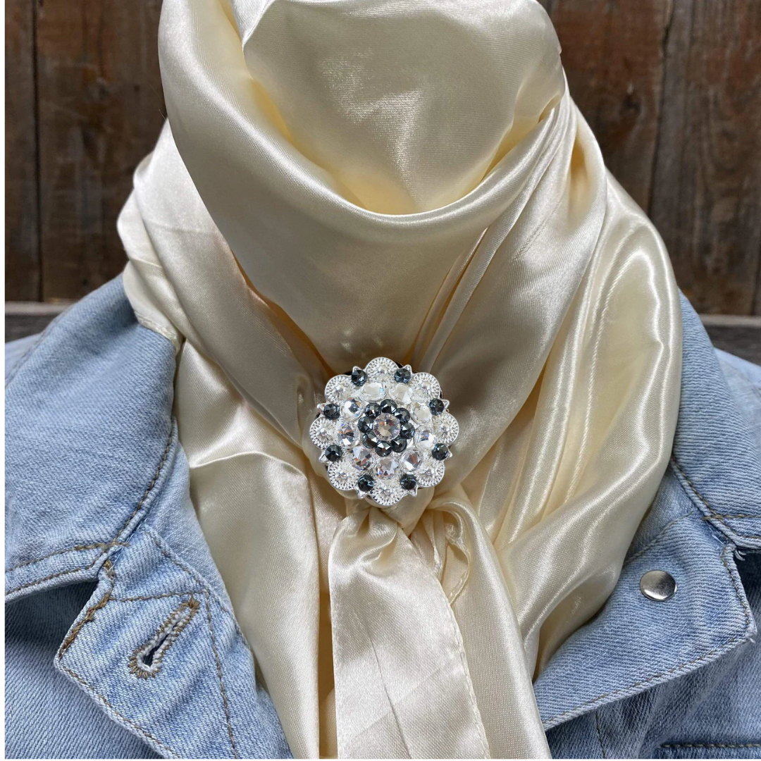 35X35" Solid Cream Wild Rag / Scarf WRS11 - Crystal Concho Wild Rag Slides - Assorted