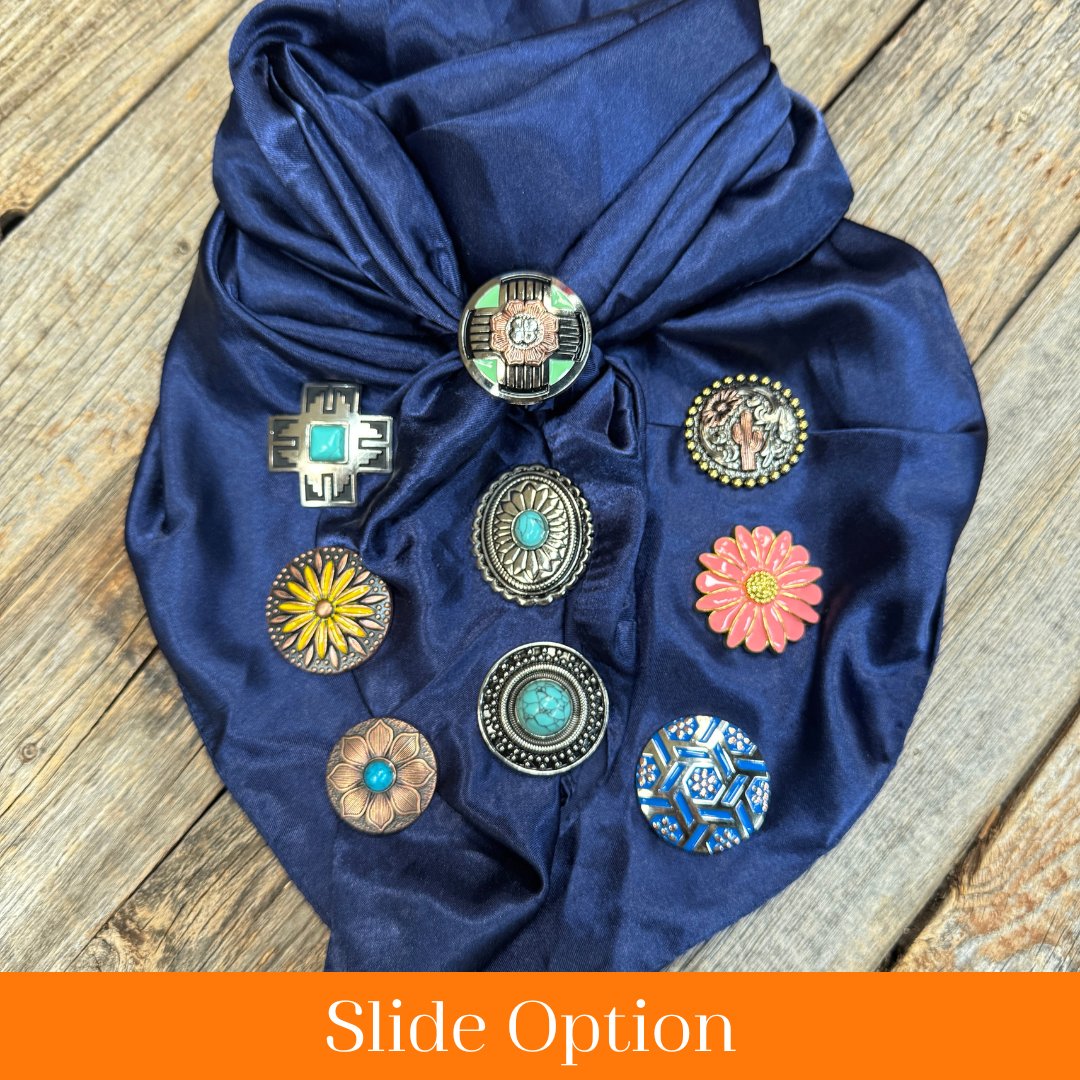 35X35" Solid Dark Blue Wild Rag / Scarf WRS9 - Western Concho Wild Rag Slides - Assorted