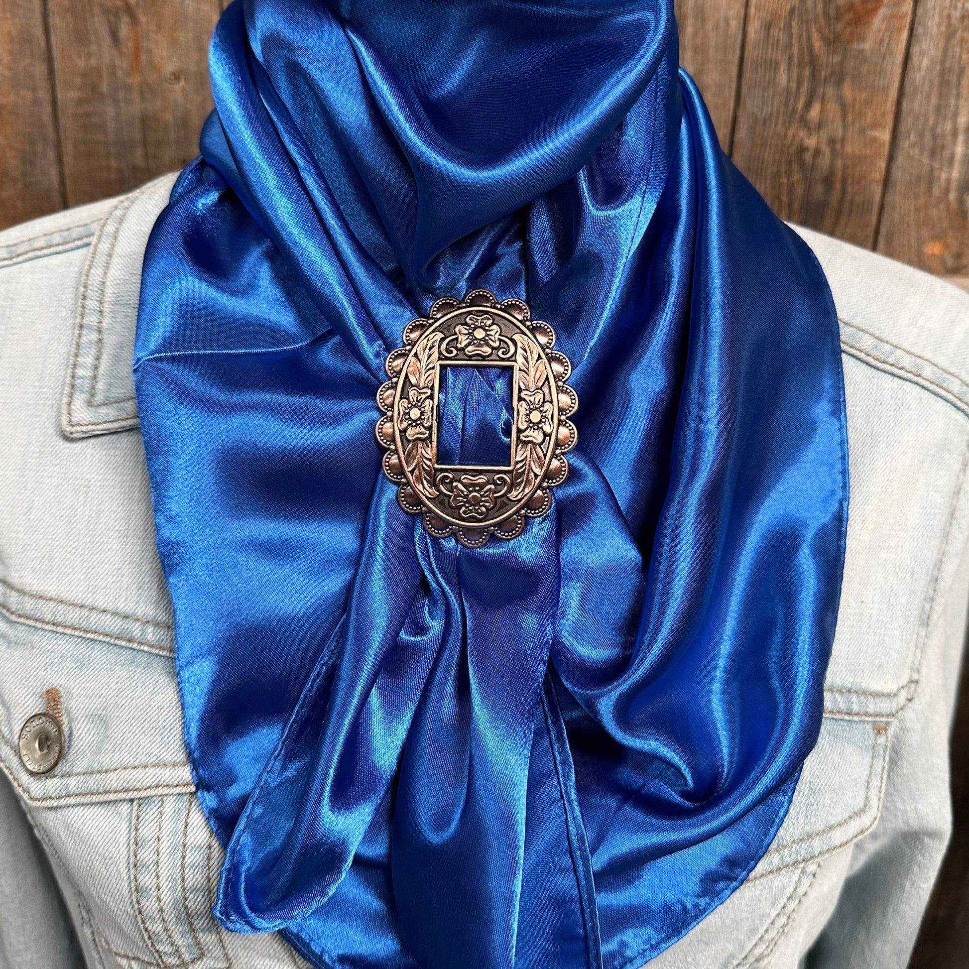 Our classic wild rag / scarf in electric blue (WRS17). It is a perfect square that measures 35"x35".