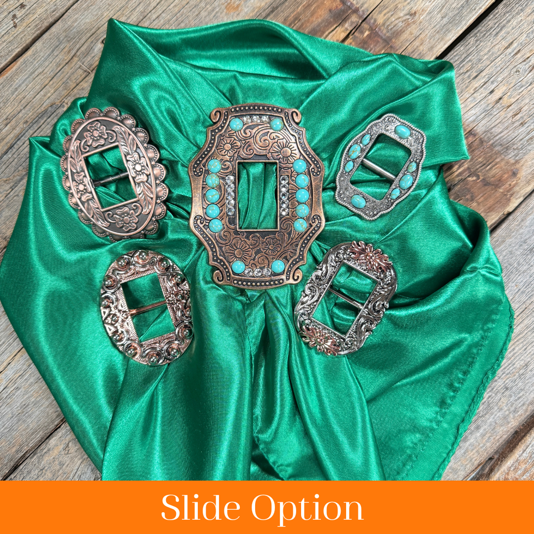 35X35" Solid Green Wild Rag / Scarf WRS18 - Buckle Wild Rag Slides - Assorted