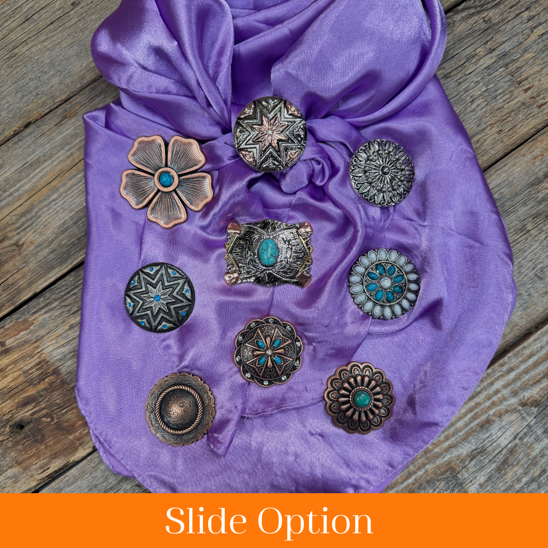 35X35" Solid Lavender Wild Rag / Scarf WRS13 - Western Concho Wild Rag Slides - Assorted