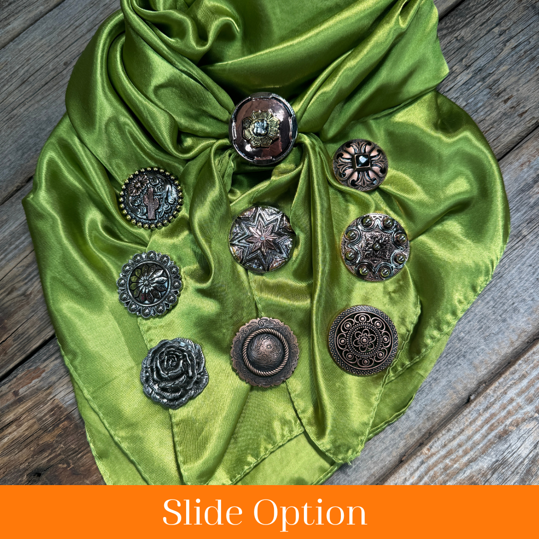 35X35" Solid Light Green Wild Rag / Scarf WRS22 - Western Concho Wild Rag Slides - Assorted
