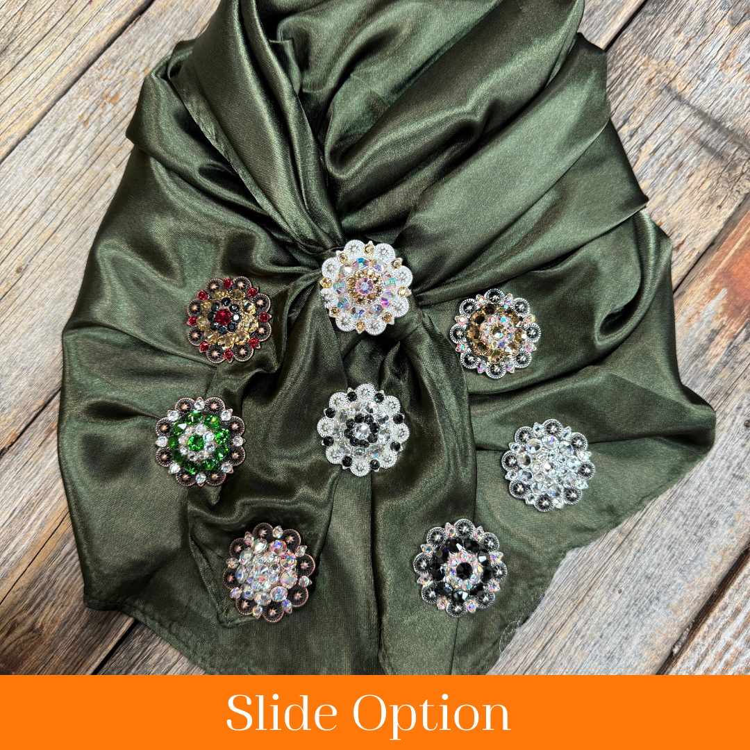 35X35" Solid Olive Wild Rag / Scarf WRS28 - Crystal Concho Wild Rag Slides - Assorted