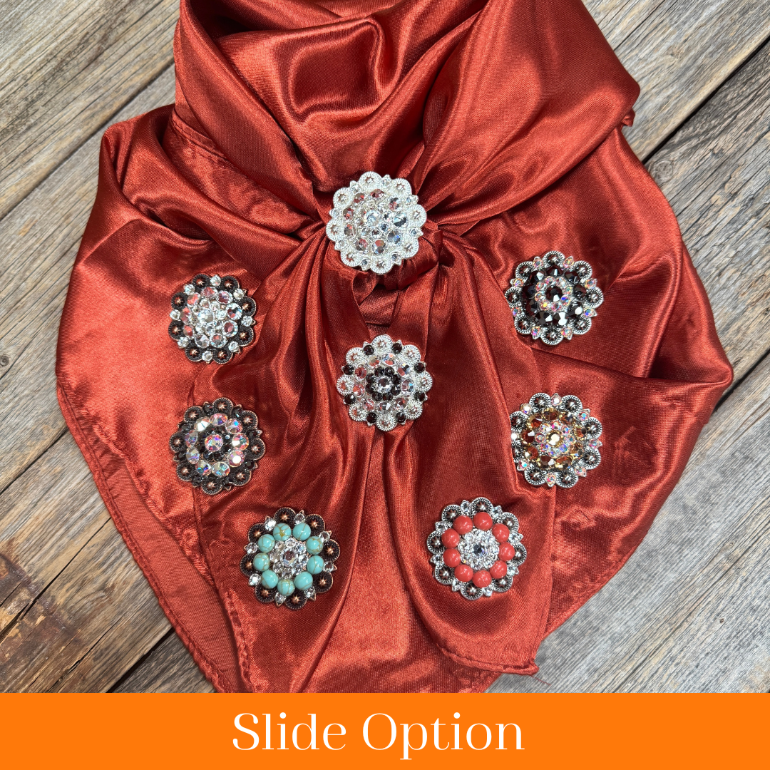35X35" Solid Rust Wild Rag / Scarf WRS16 - Crystal Concho Wild Rag Slides - Assorted