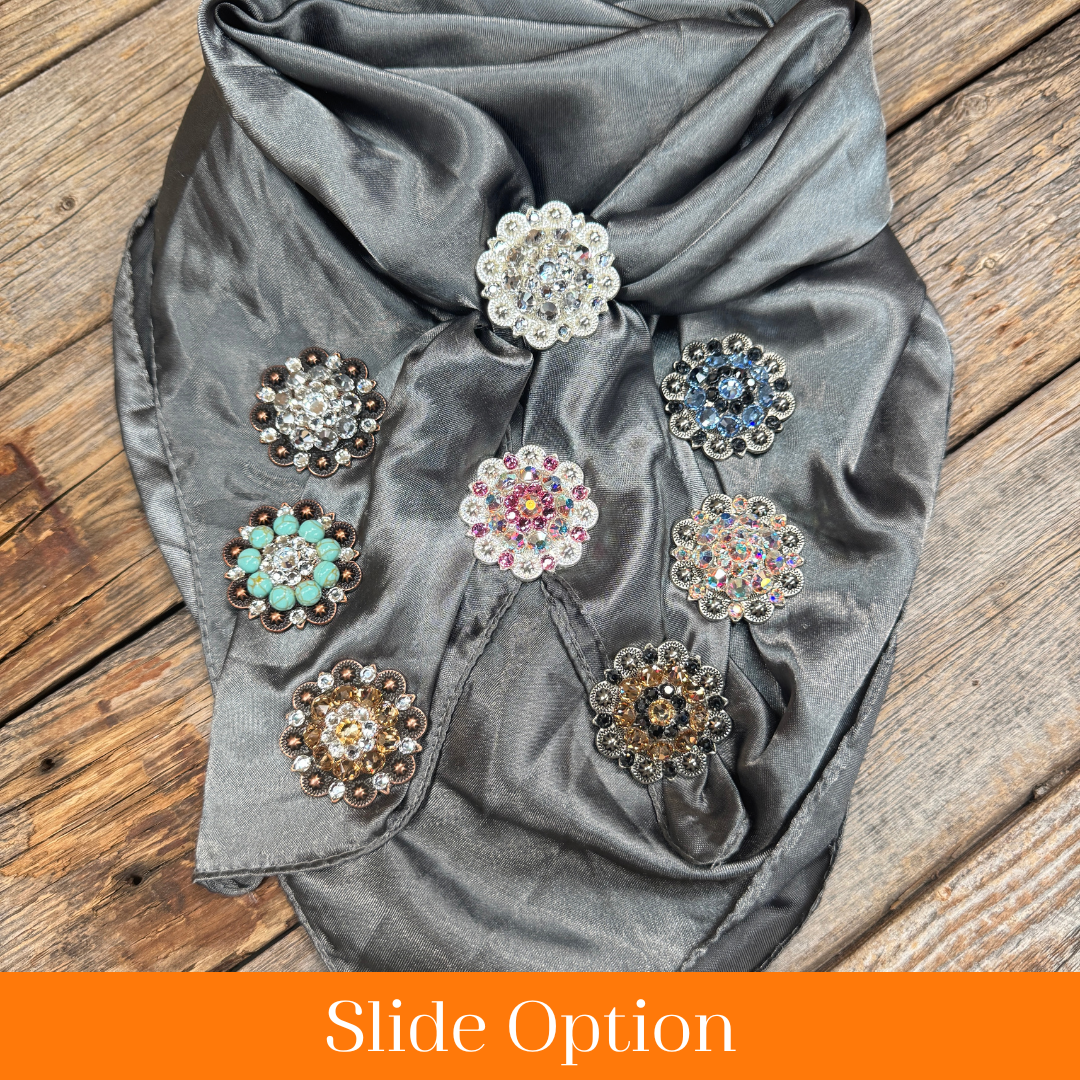 35X35" Solid Silver / Grey Wild Rag / Scarf WRS15 - Crystal Concho Wild Rag Slides - Assorted