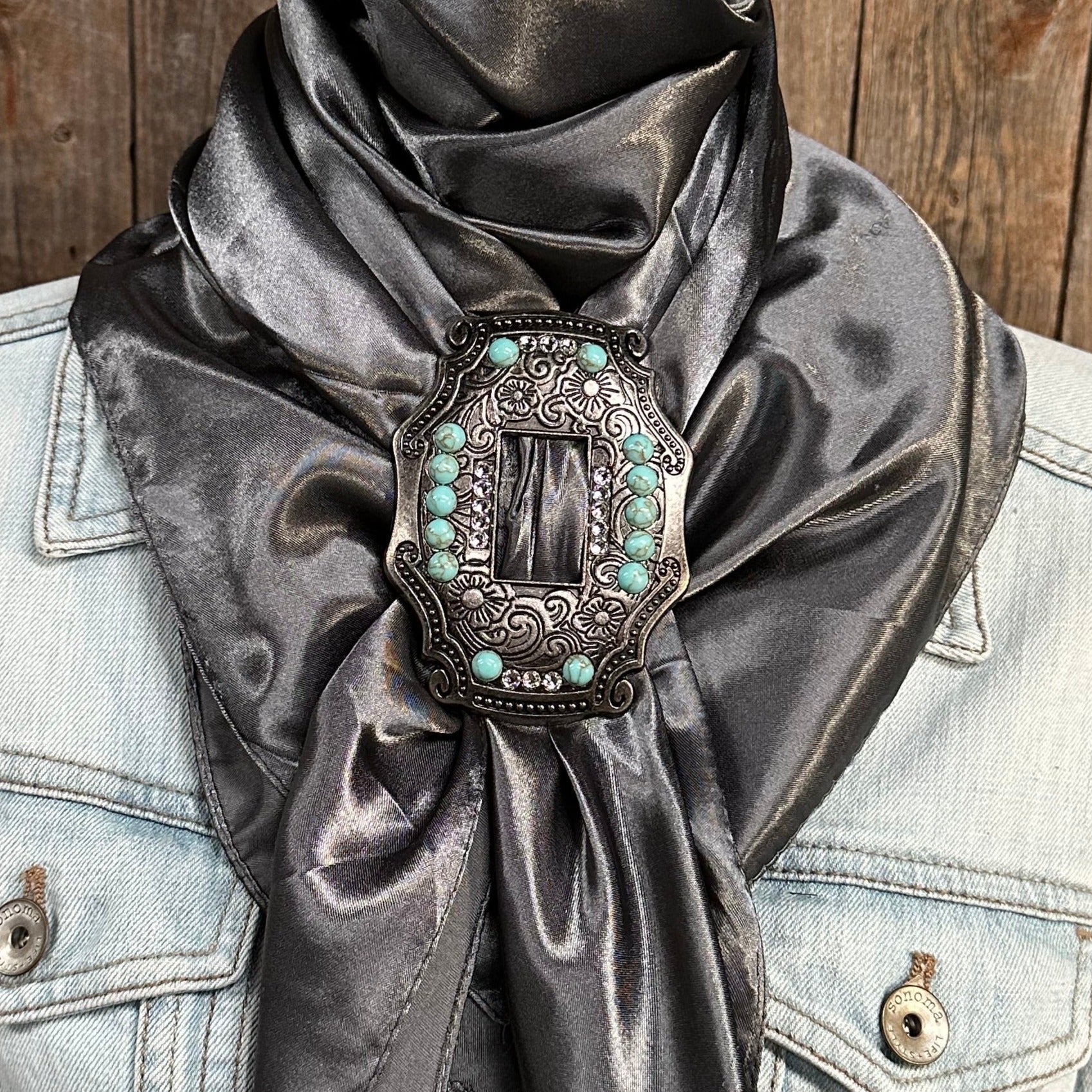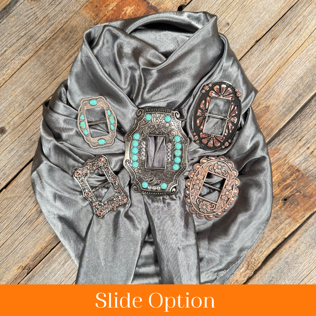 35X35" Solid Silver Wild Rag / Scarf WRS15 - Buckle Wild Rag Slides - Assorted