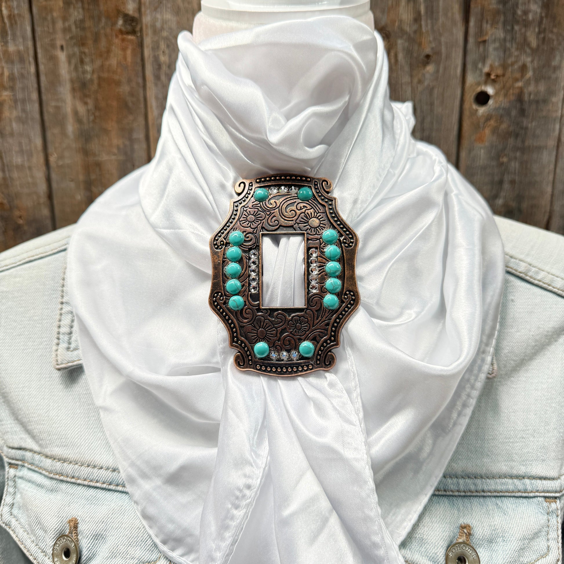 35X35" Solid White Wild Rag / Scarf WRS3 - Buckle Wild Rag Slides - Assorted