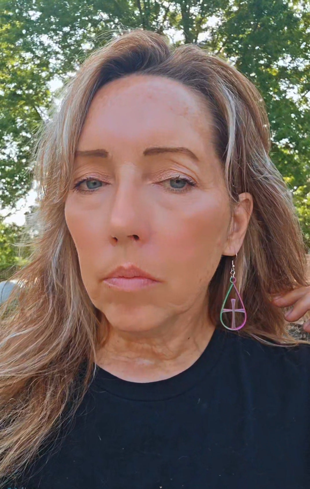 We print these on our 3d printer in pla filament - makes them incredibly light! Please make sure you wear the backs for the earrings- they are so light you won't know you lost one!