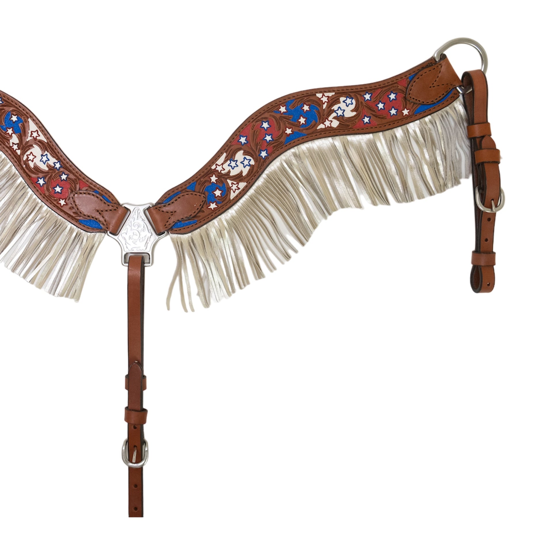 3F17-USA 2-1/2" Wave breast collar toast leather combo AA/star tooling with background paint and fringe