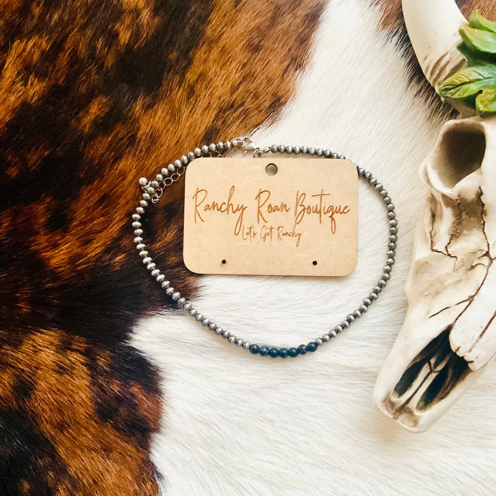 Add a touch of traditional Western elegance to your boutique’s collection with these 4mm Navajo Style Pearl Choker Necklaces. Available in two styles—burnished silver and black or burnished silver with multicolor accents—these choker necklaces are perfect for layering or wearing alone. The high-quality burnished silver beads offer a rustic yet polished look, while the adjustable chain ensures a comfortable fit. Perfect for cowgirls who appreciate timeless Western jewelry with a modern twist.