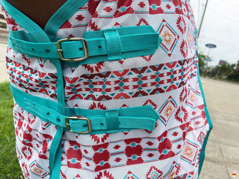 FEATURE: This Hilason Horse Fly Sheet is crafted from durable poly/nylon mesh for maximum airflow while keeping bugs and insects away. It offers UV protection and includes a double front buckle, adjustable leg straps, and secure neck and belly closures. Designed for comfort and function, it also features multiple gussets to allow your horse freedom of movement. Horse fly sheet UV protection is ideal for protection and performance during warm weather.