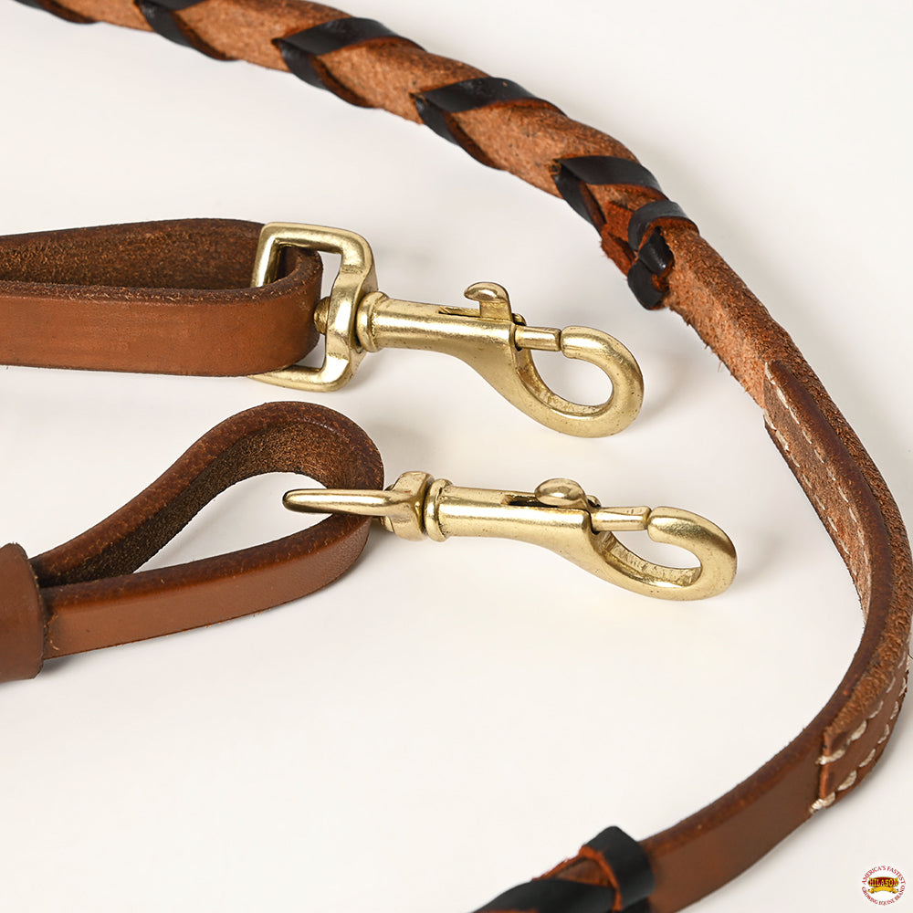 LEATHER ROPER REIN: Introducing our exquisite Leather reins barrel - the perfect blend of elegance, durability, and superior craftsmanship for riders of all disciplines! These racing reins are expertly crafted to enhance your control, comfort, and style in the saddle, making them a must-have addition to your equestrian gear collection. With a comfortable feel in your hands, these leather reins offer excellent grip and tactile response, allowing you to maintain precise communication with your horse. The supple leather ensures a soft touch that won't cause discomfort, even during extended riding sessions. At the heart of these barrel reins leather lies an intelligent design that perfectly balances flexibility and strength. The ideal width and length offer optimum maneuverability, whether you're navigating tight turns around barrels or guiding your horse through obstacles with ease and precision. Don't settle for anything less than the best for you and your horse. Invest in our western reins leather today and enjoy a superior riding experience like never before! PRODUCT INFORMATION In these horse western reins, the material is used American leather. The color is Brown and the size is 8 Feet Long.