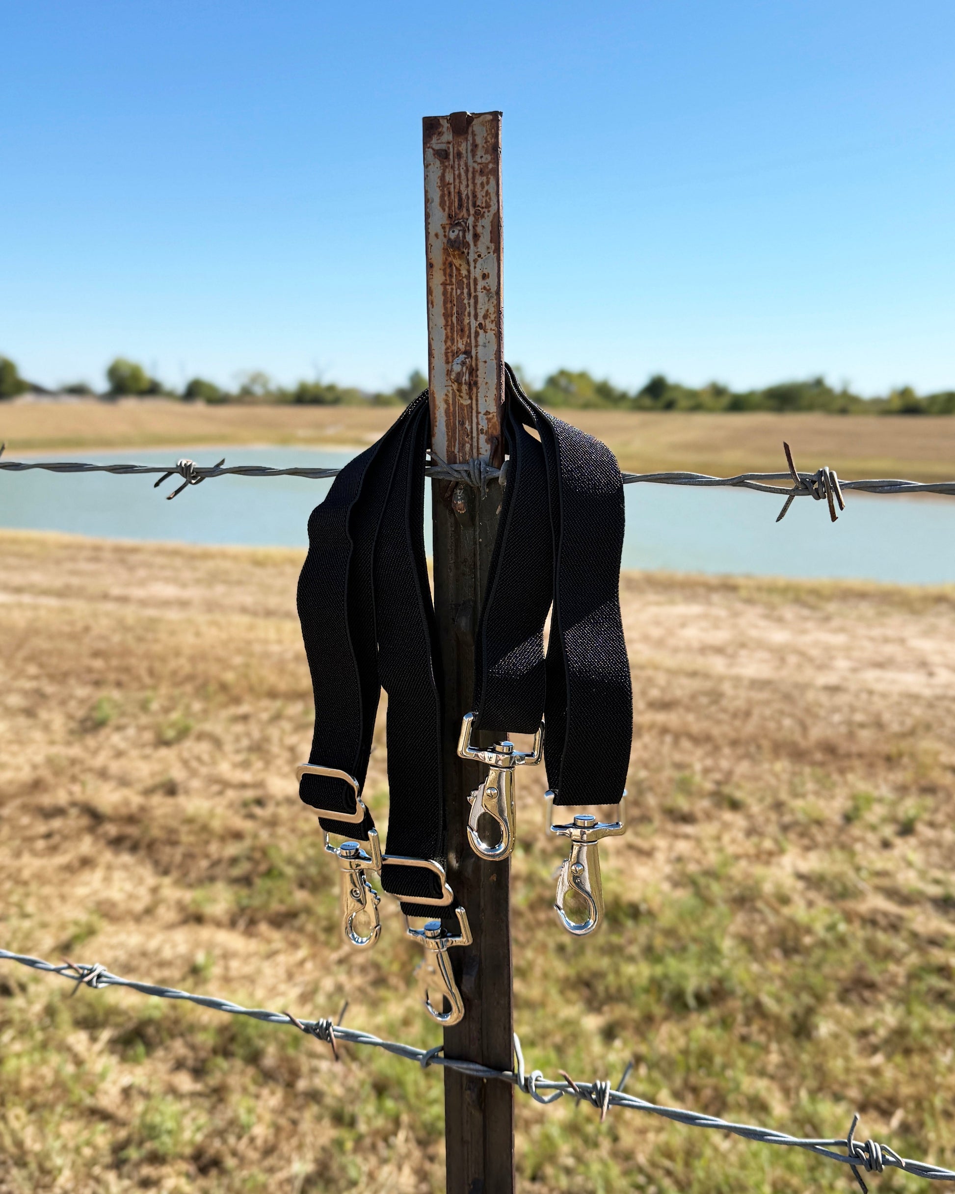 Enhance your horse's comfort with the AJ Tack Elastic Replacement Blanket Leg Straps. Perfect for keeping blankets secure and in place, these sturdy 1-inch wide elastic straps are fully adjustable, with a range of 18" to 36" for a custom fit. The pair includes swivel snaps on both ends, making them easy to attach and detach as needed. Crafted to replace old or broken straps, this reliable set ensures that your horse’s blanket stays properly fitted and comfortable, no matter the weather.