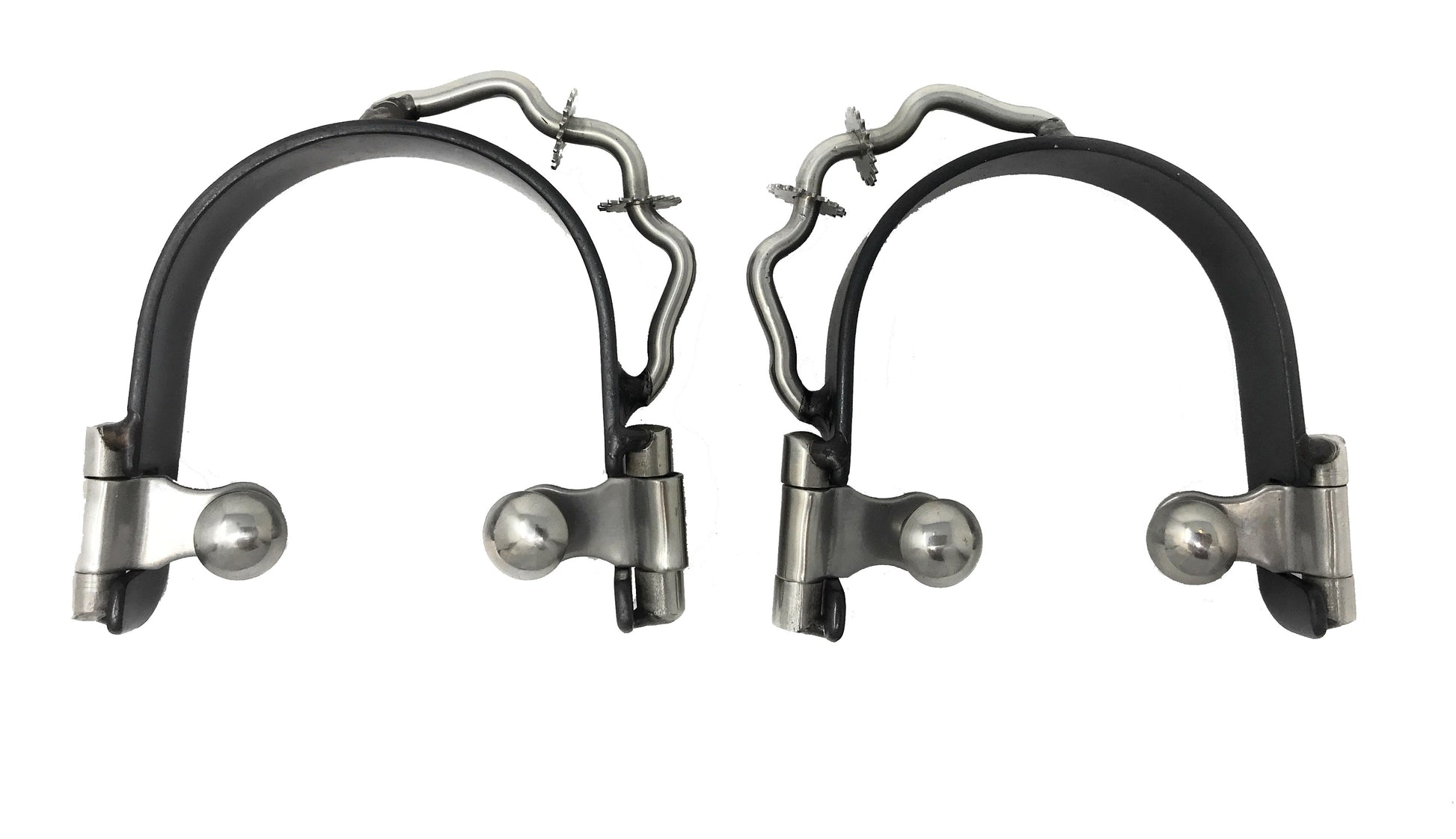 The AJ Tack Ladies Black Bumper Spurs with Rowels are designed for comfort and control, featuring black steel construction and two small rowels for added kick. These spurs offer a gentle but effective cue, making them perfect for riders seeking precision in their performance.