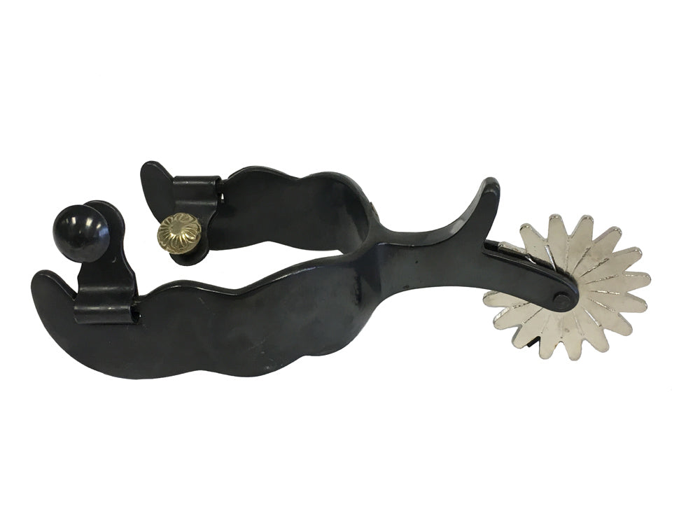 The AJ Tack Men's Cowboy Show Spurs with Silver Engraving are crafted from black steel with a hand-engraved silver overlay featuring a silver bars motif. With engraved silver buttons, jingle bobs, and a chap guard, these spurs combine style and functionality, making them perfect for any cowboy looking to make an impression in the show ring.