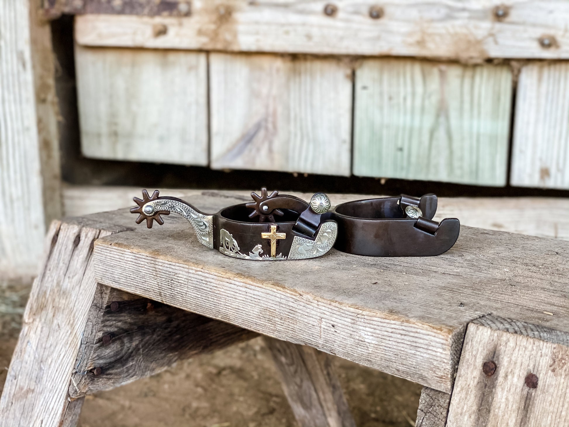 - Antique Brown Rowels: 1 1⁄2" 10-point brown steel rowels, offering a balanced level of responsiveness.