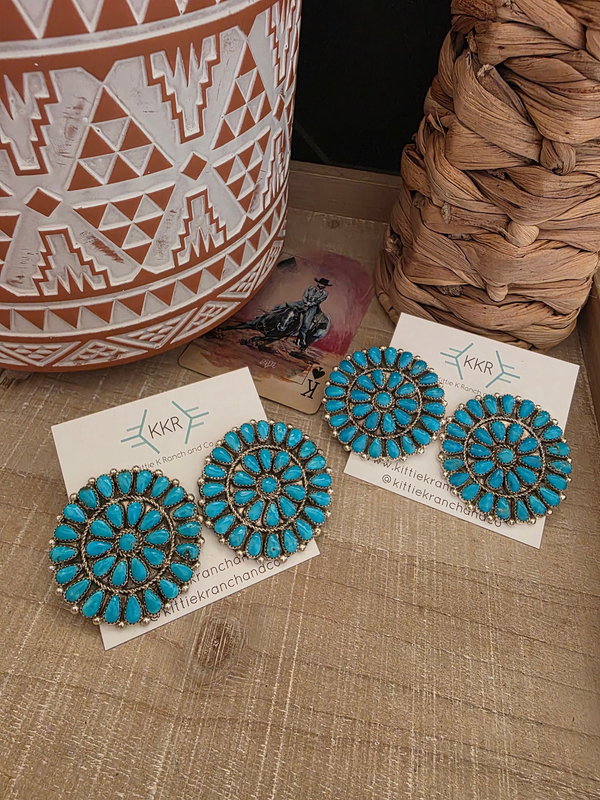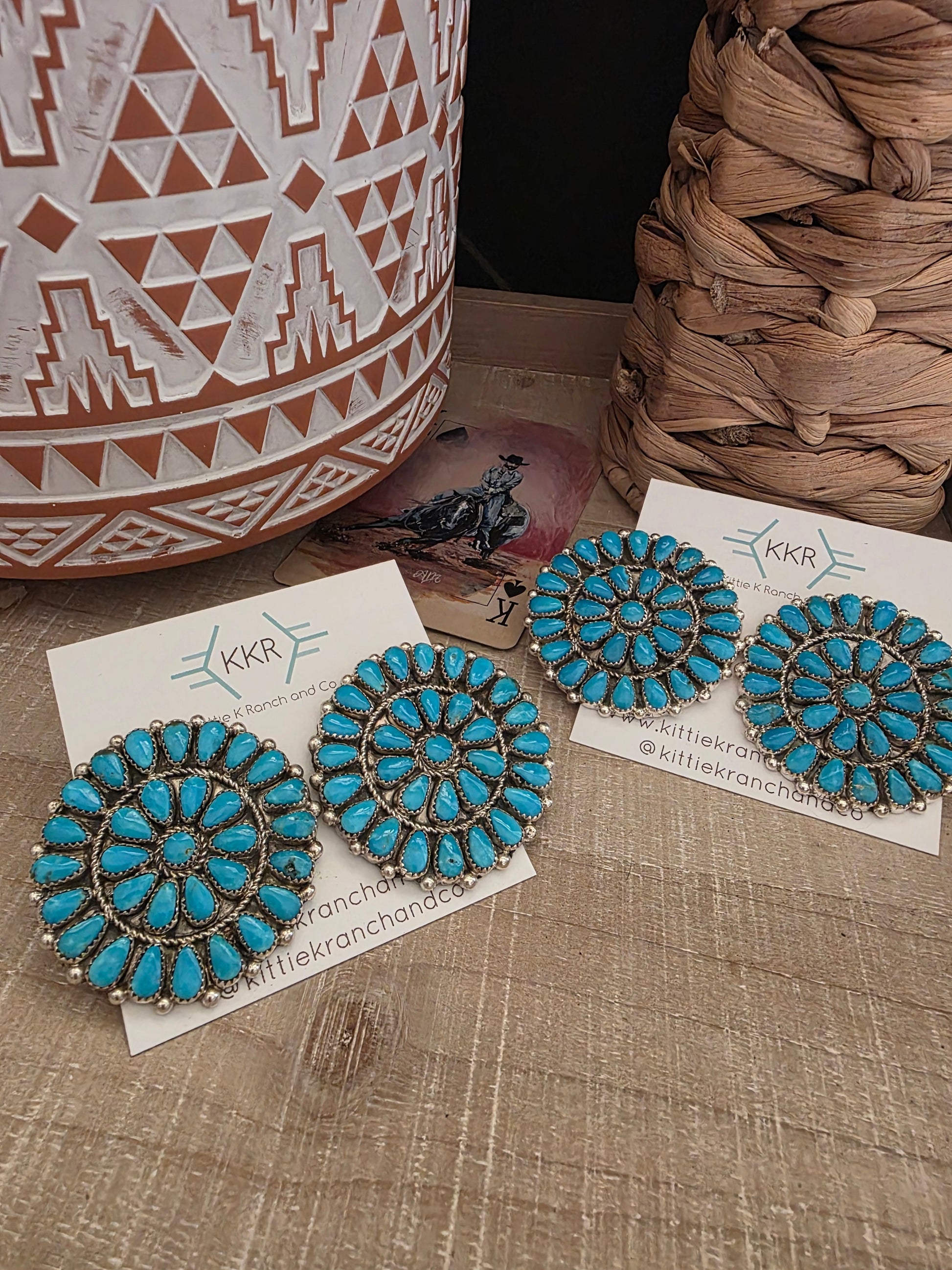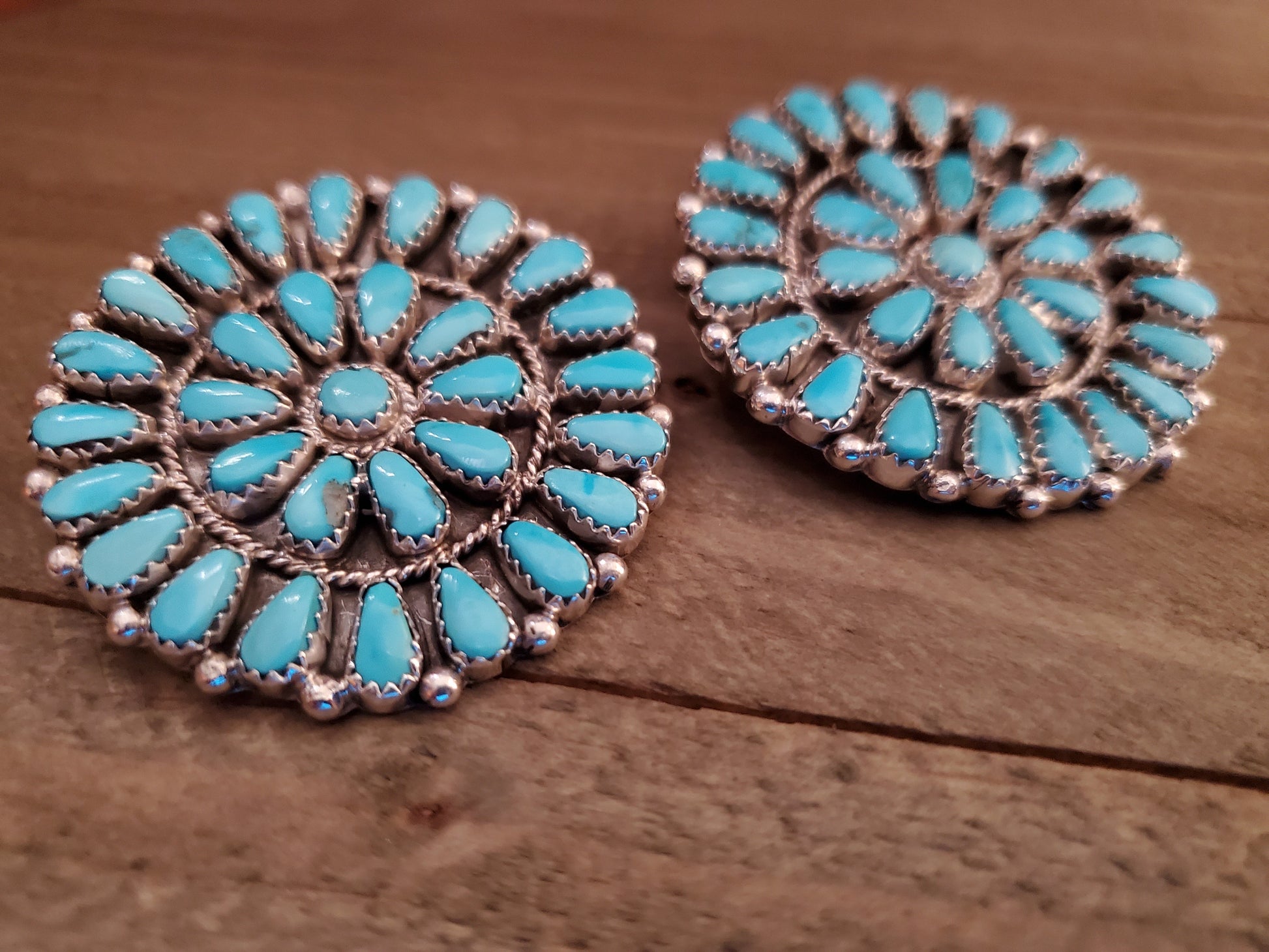 - Large Navajo Turquoise Cluster Studs