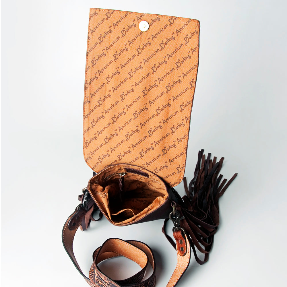 PREMIUM QUALITY MATERIAL: This is a handmade American Darling women's crossbody bag made with hand-tooled genuine leather that gives it a traditional Western yet trendy and elegant look. High Quality Soft and supple Eco friendly vegetable-tanned full grain genuine leather is also used to make this crossbody bag that ages beautifully as it wears. These genuine leather bags are complemented with a beautiful leather fringe giving it a western look. Available in Size: H10.5 X W8