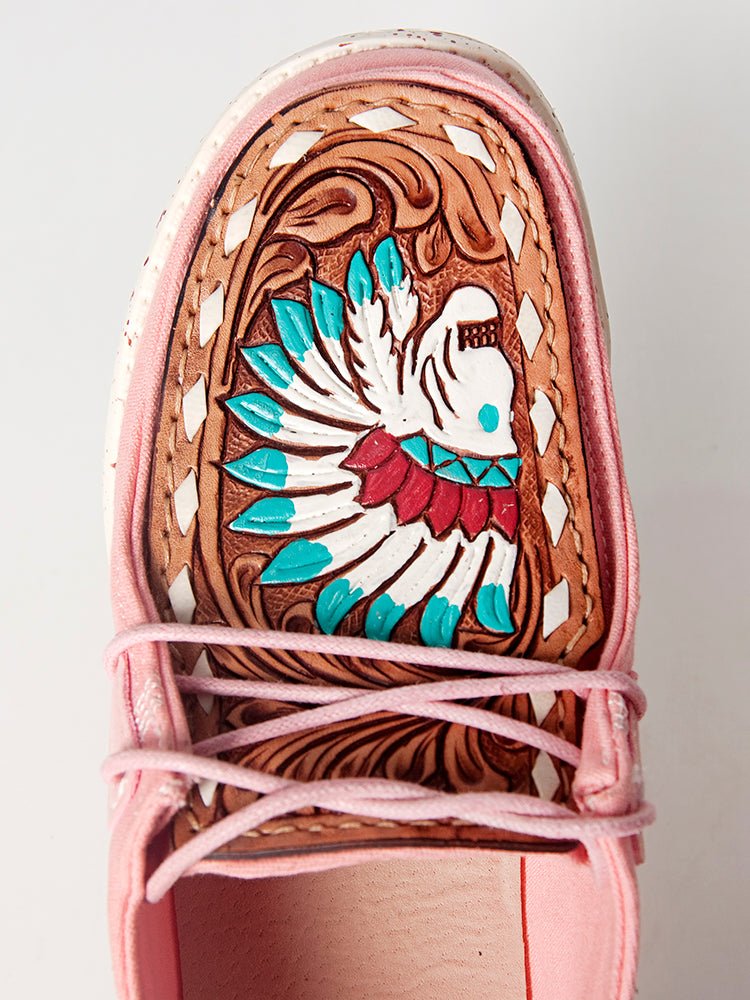 American Darling ADFT133PK1 Hand tooled carved genuine leather trim lightweight shoe footwear slip on