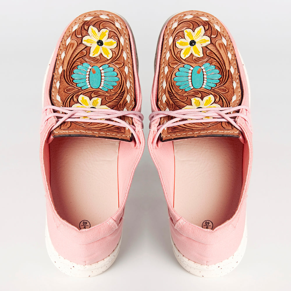 American Darling ADFT133PK5 Hand tooled carved genuine leather trim lightweight shoe footwear slip on