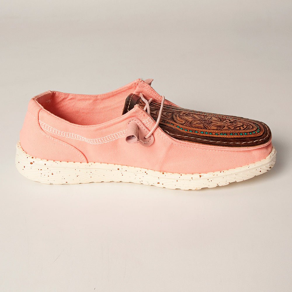 American Darling ADFT133PK9 Hand tooled carved genuine leather trim lightweight shoe footwear slip on
