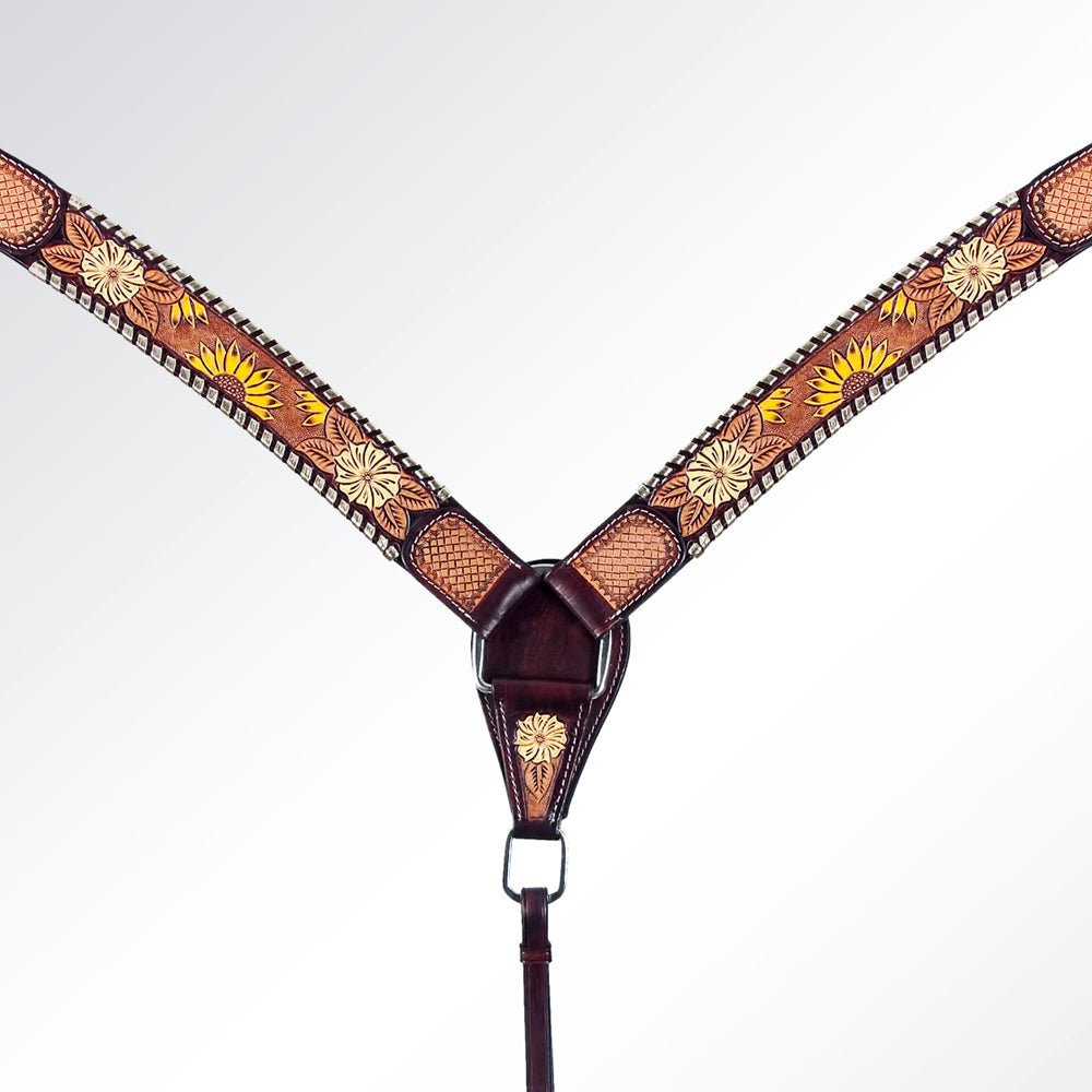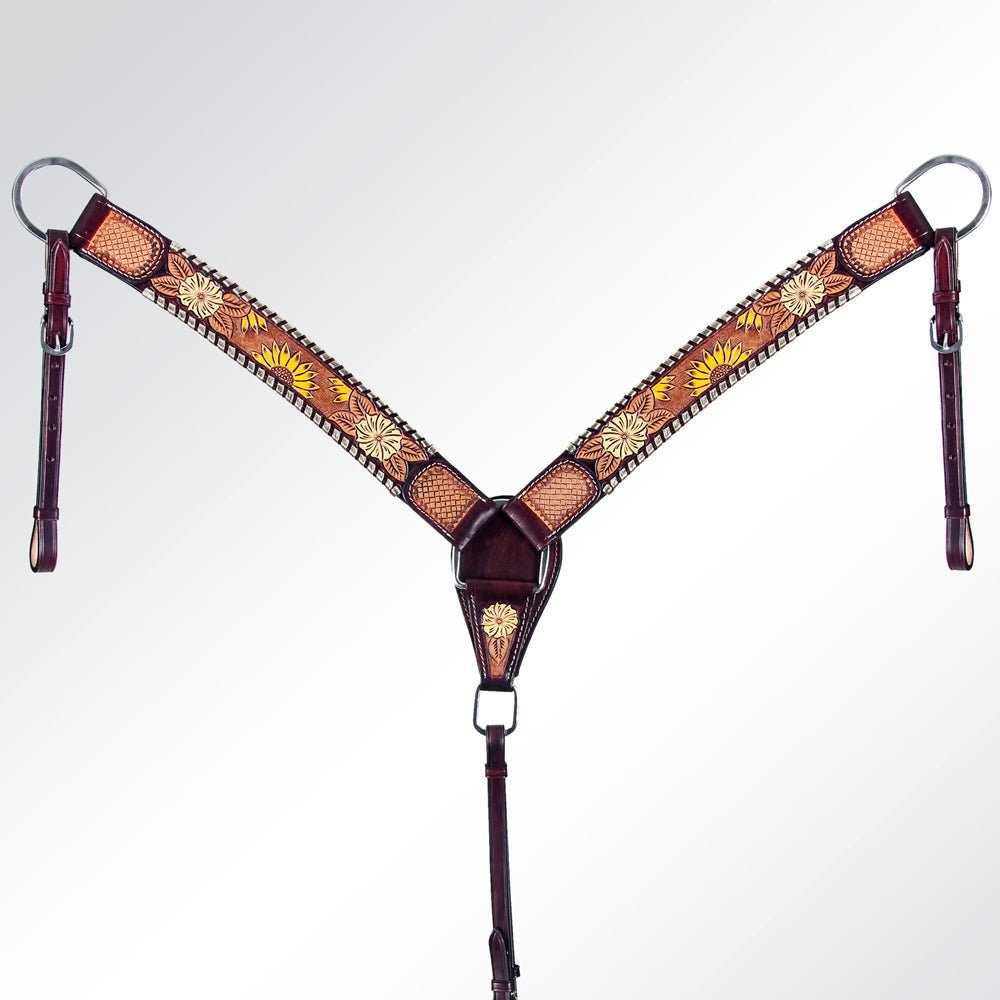✔Easy Maintenance: Keeping your horse's accessories in top condition is simple with our easy-to-clean leather. A damp cloth is all you need to wipe away dust and maintain the set's pristine appearance.A luxurious and western handcrafted leather collection designed by American Darling here in the heart of Texas. These gorgeous creations deliver a blend of western culture and heritage along with the latest fashion and trendy appeal. It makes your appearance eye-catching by its amazing colors, materials, and meticulous hand work. Eco friendly genuine leather is handpicked and sourced from some of the best tanneries in the world. The bag is made by highly experienced and skilled craftsmen of the industry using the highest quality standard of production.Choose stylename for individual headstall or breastcollar.