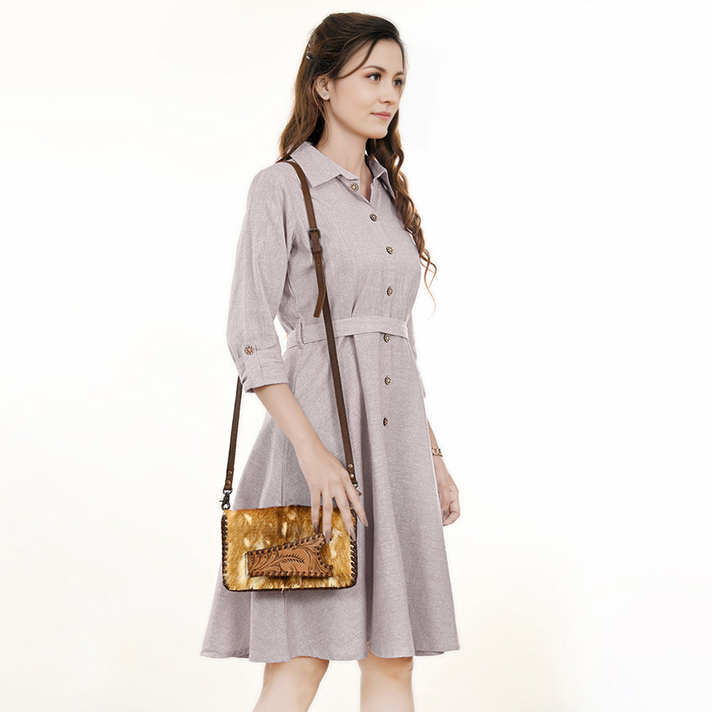LUXURIOUS AND WESTERN: Handcrafted American Genuine Leather bag is designed by American Darling here in the heart of Texas. These gorgeous creations deliver a blend of Western culture and heritage along with the latest fashion and trendy appeal. Eco-friendly genuine leather is handpicked and sourced from some of the best tanneries in the world. The bag is made by highly experienced and skilled craftsmen of the industry . Size: 5in (H) X 9in (W) X 1.5in (D)