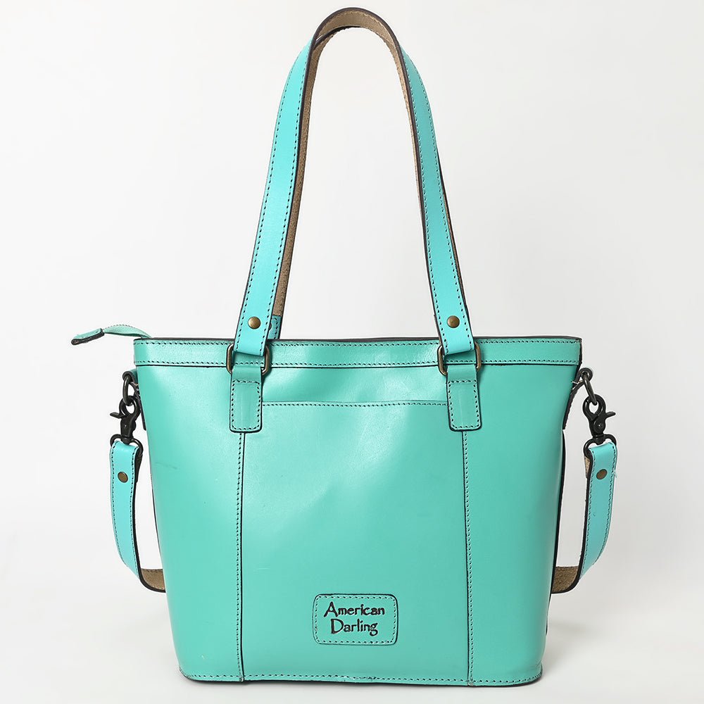 PREMIUM QUALITY MATERIAL: This is a handmade American Darling women's tote bag made with a detailed Western theme Hand tooled, carved, and painted Eco-friendly vegetable-tanned American Genuine Cowhide Leather. It is exquisitely done by the finest craftsmen in the country. High Quality Soft and supple vegetable full grain Genuine leather is also used to make this handbag that ages beautifully as it wears. Available in size: 9in (H) X 11.5in (W) X 2.5in (D).
