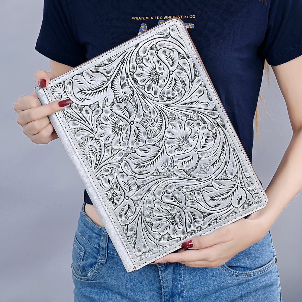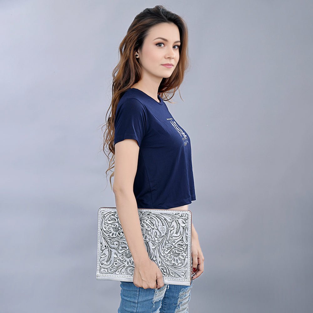 PREMIUM QUALITY MATERIAL: This is a handmade American Darling women's Portfolio Bag made with a detailed Western theme Hand tooled, carved, and painted Eco friendly vegetable-tanned American Genuine Cowhide Leather. It is exquisitely done by the finest craftsmen in the country. High Quality Soft and supple Eco friendly vegetable-tanned full grain leather is also used to make this handbag that ages beautifully as it wears. Available in size: 12.5in (H) X 9.5in (W).