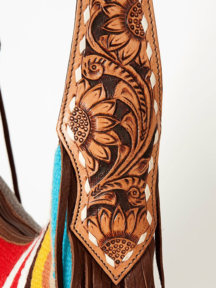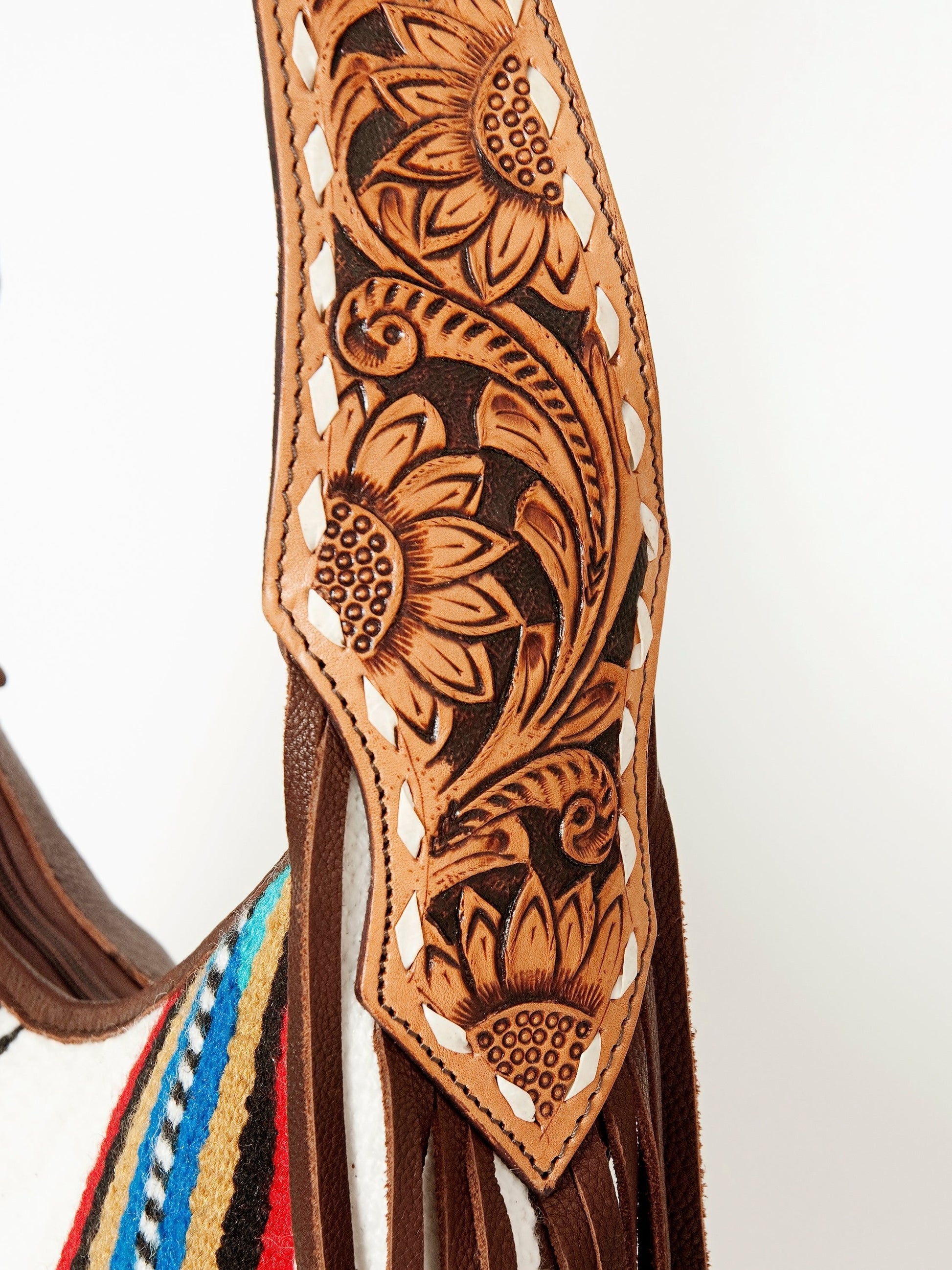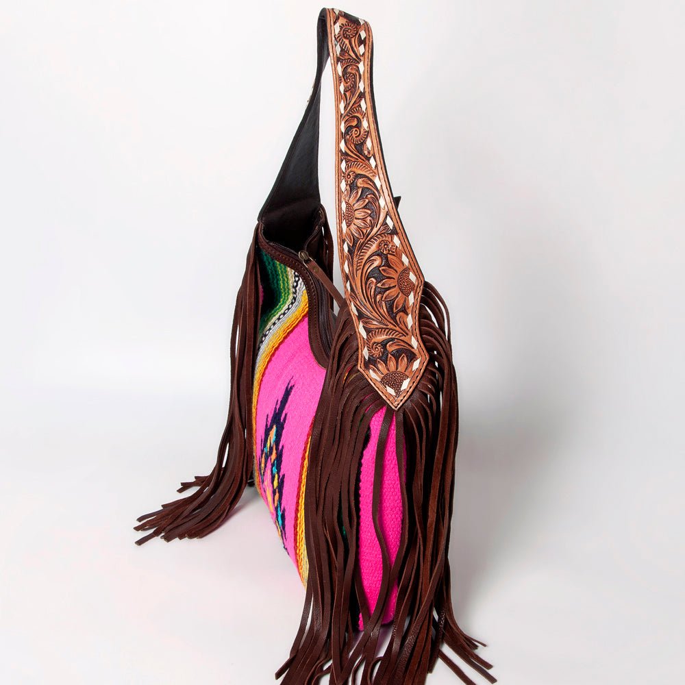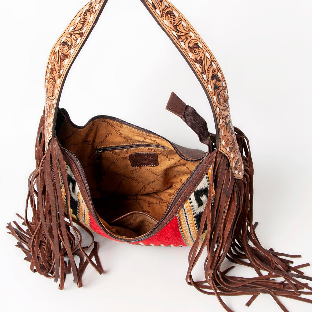 PREMIUM QUALITY MATERIAL: This handmade American Darling women's hobo bag is made with hand-weaved woolen saddle blanket fabric that gives it a traditional Western yet trendy and elegant look. High Quality Soft and supple Eco-friendly vegetable-tanned full grain and hand-tooled genuine leather are also used to make this handbag that ages beautifully as it wears. These hobo bags are complemented with a beautiful leather fringe giving it a western look. Available in Size: 13.5L X 16.5W X 5D