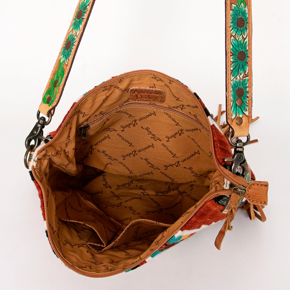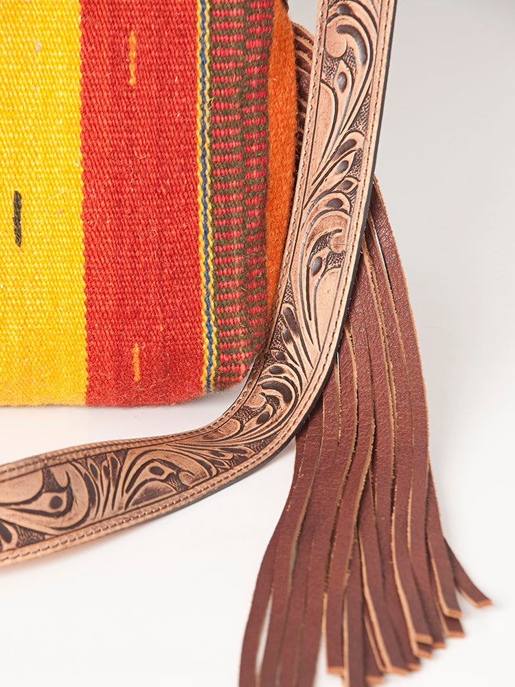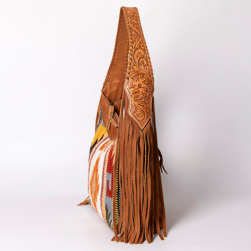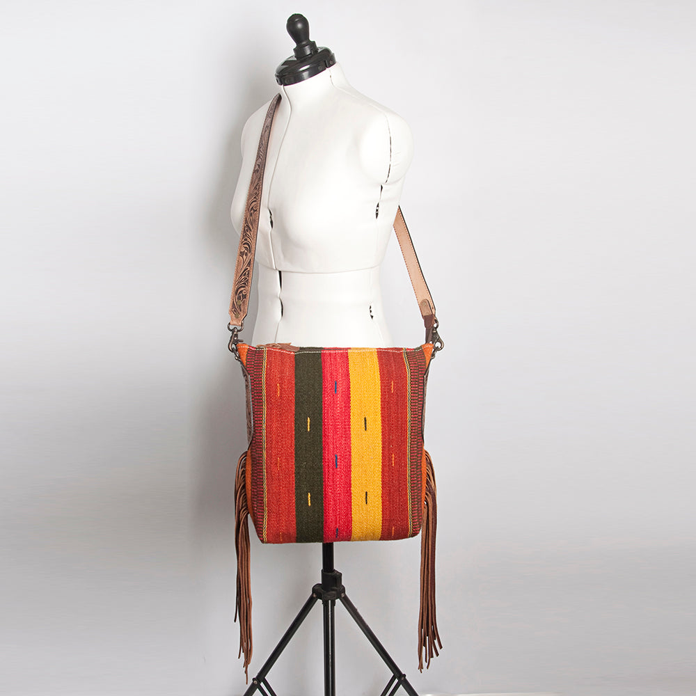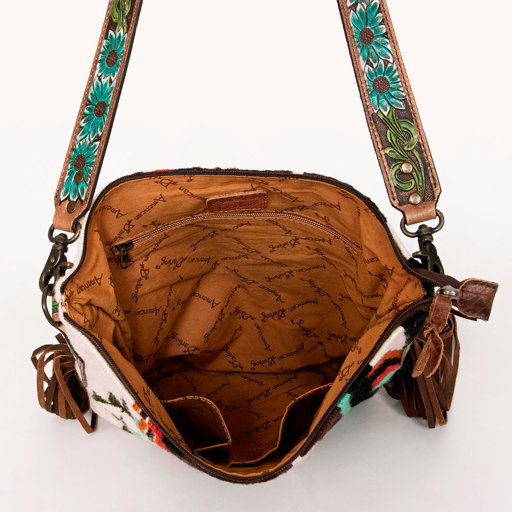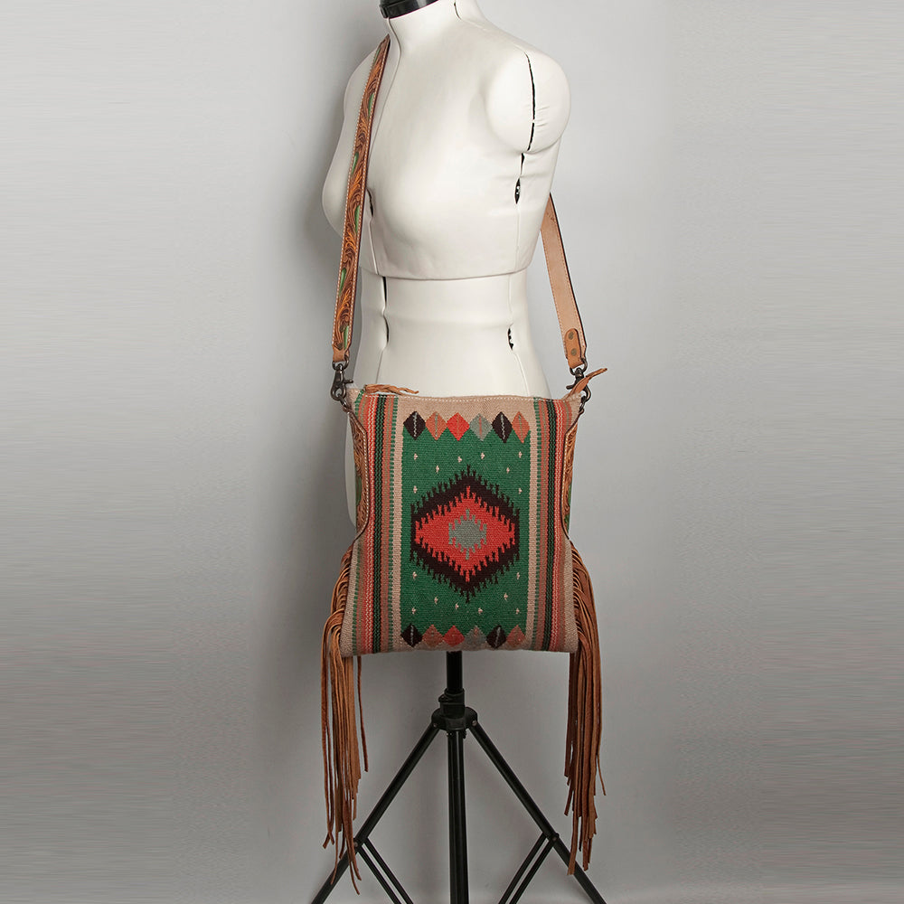 PREMIUM QUALITY MATERIAL: This is a handmade American Darling women's Messenger Bag made with hand-weaved woolen saddle blanket fabric that gives it a traditional Western yet trendy and elegant look. High Quality Soft and supple Eco friendly vegetable-tanned full grain and hand tooled Genuine leather are also used to make this handbag that ages beautifully as it wears. These Messenger Bags are complemented with a beautiful leather fringe giving it a western look.