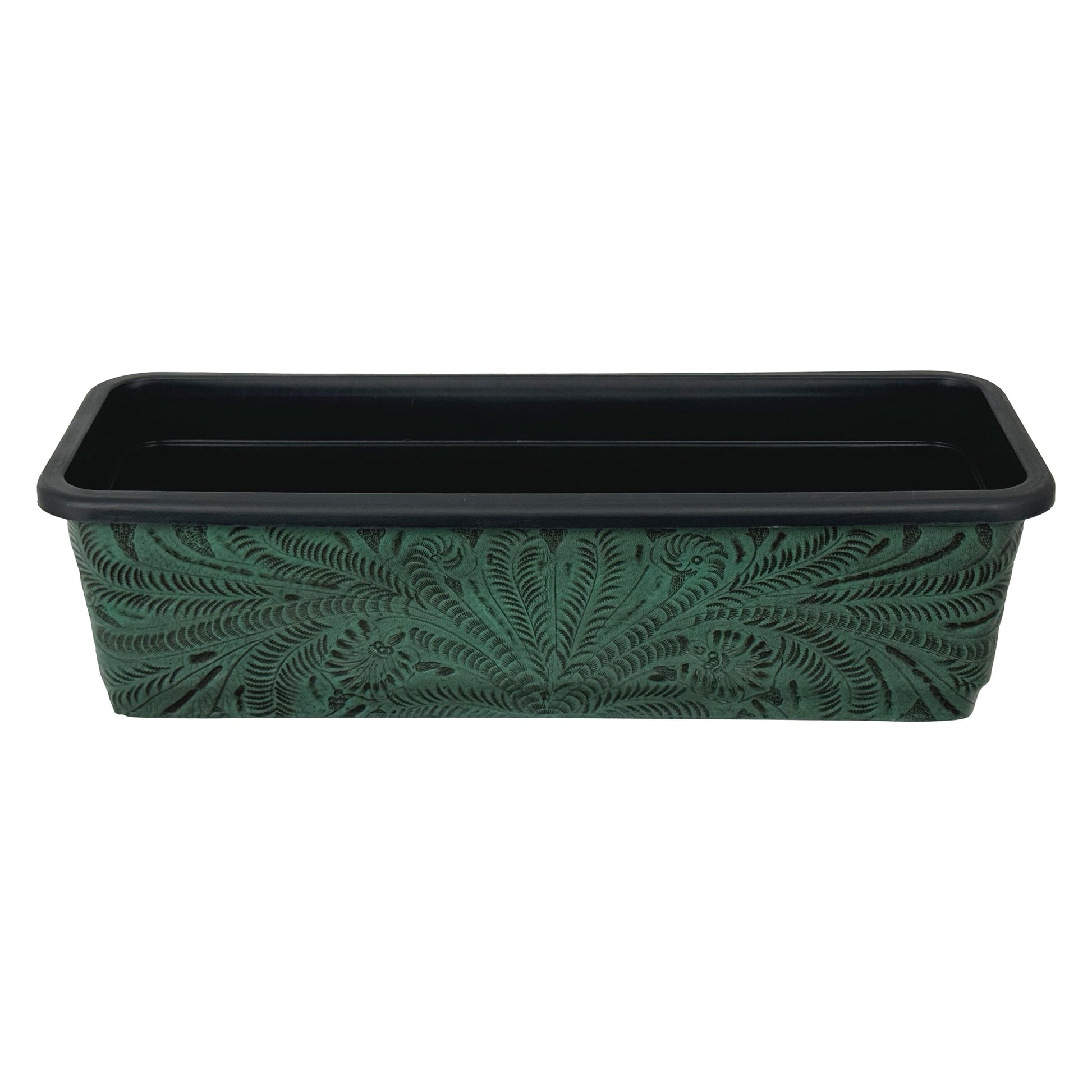 American West at Home 18" Rectangle Planter with Tooled Leather - Large