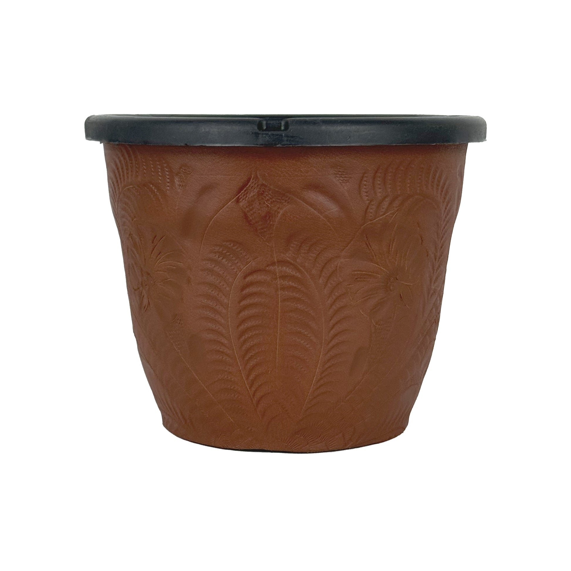American West at Home 6.5" Round Planter with Tooled Leather - Medium