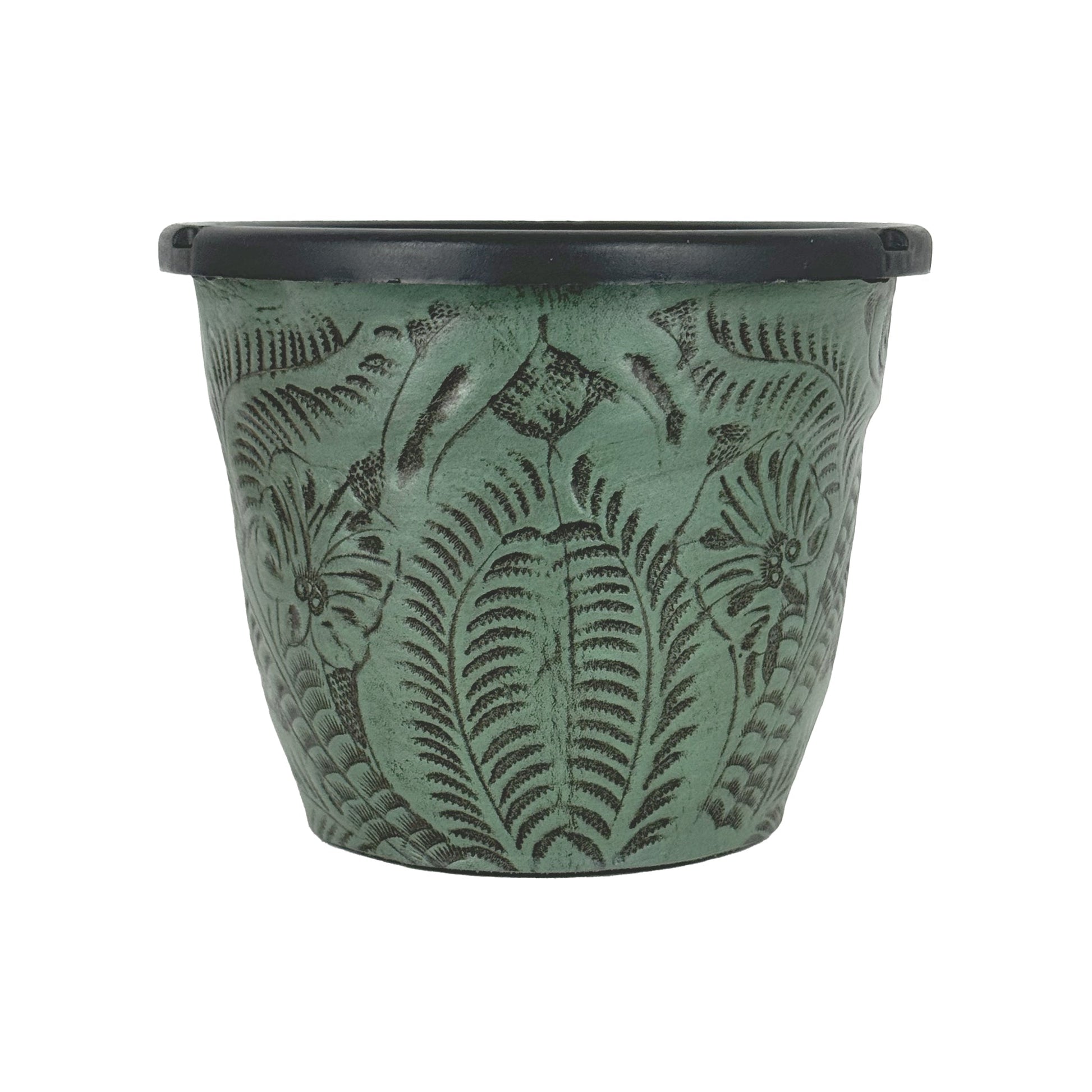 Elevate your indoor greenery with the American West at Home 6.5" Round Planter featuring intricately tooled leather detailing. This medium-sized planter combines craftsmanship and functionality, providing a durable and stylish vessel that protects surfaces while enhancing any room’s aesthetic. Its unique leatherwork offers a sophisticated, western-inspired accent, making it both a practical and decorative addition for plant enthusiasts seeking quality and distinctive design.