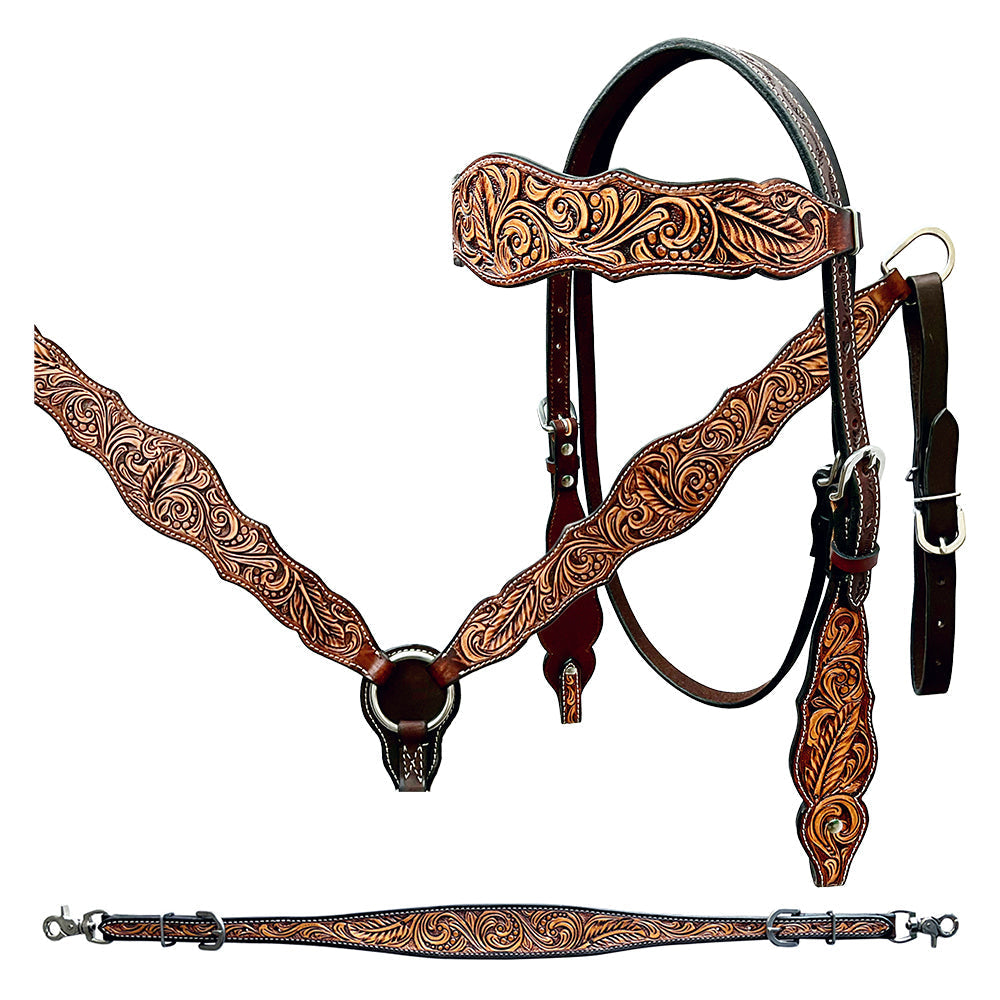 Bar H Equine Genuine Western American Leather Horse Premium Headstall & Breast Collar Set