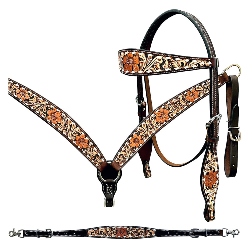 Bar H Equine Genuine Western American Leather Horse Premium Headstall & Breast Collar Set