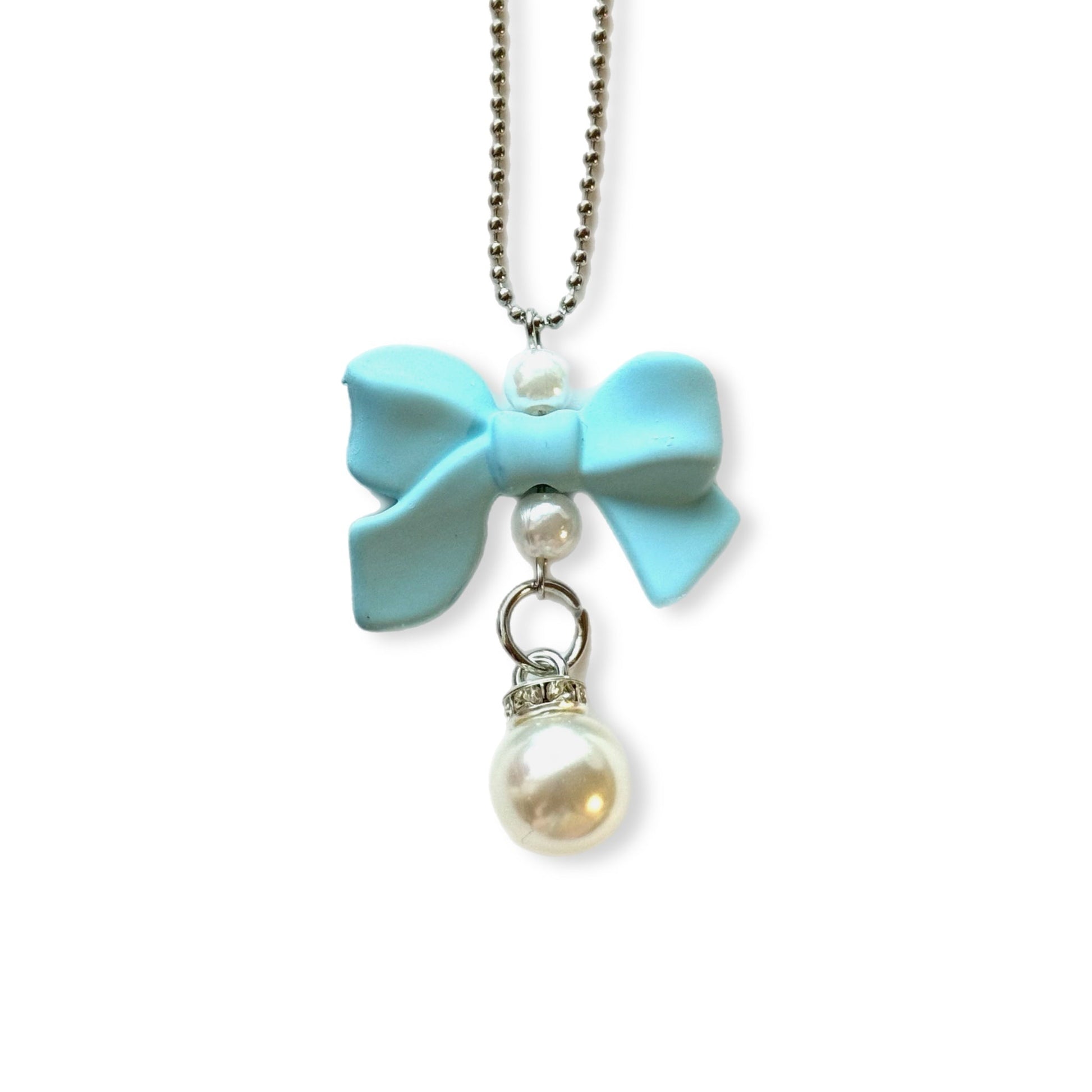 Blue Bow & Pearl Charm - Tumbler Handle Charm
