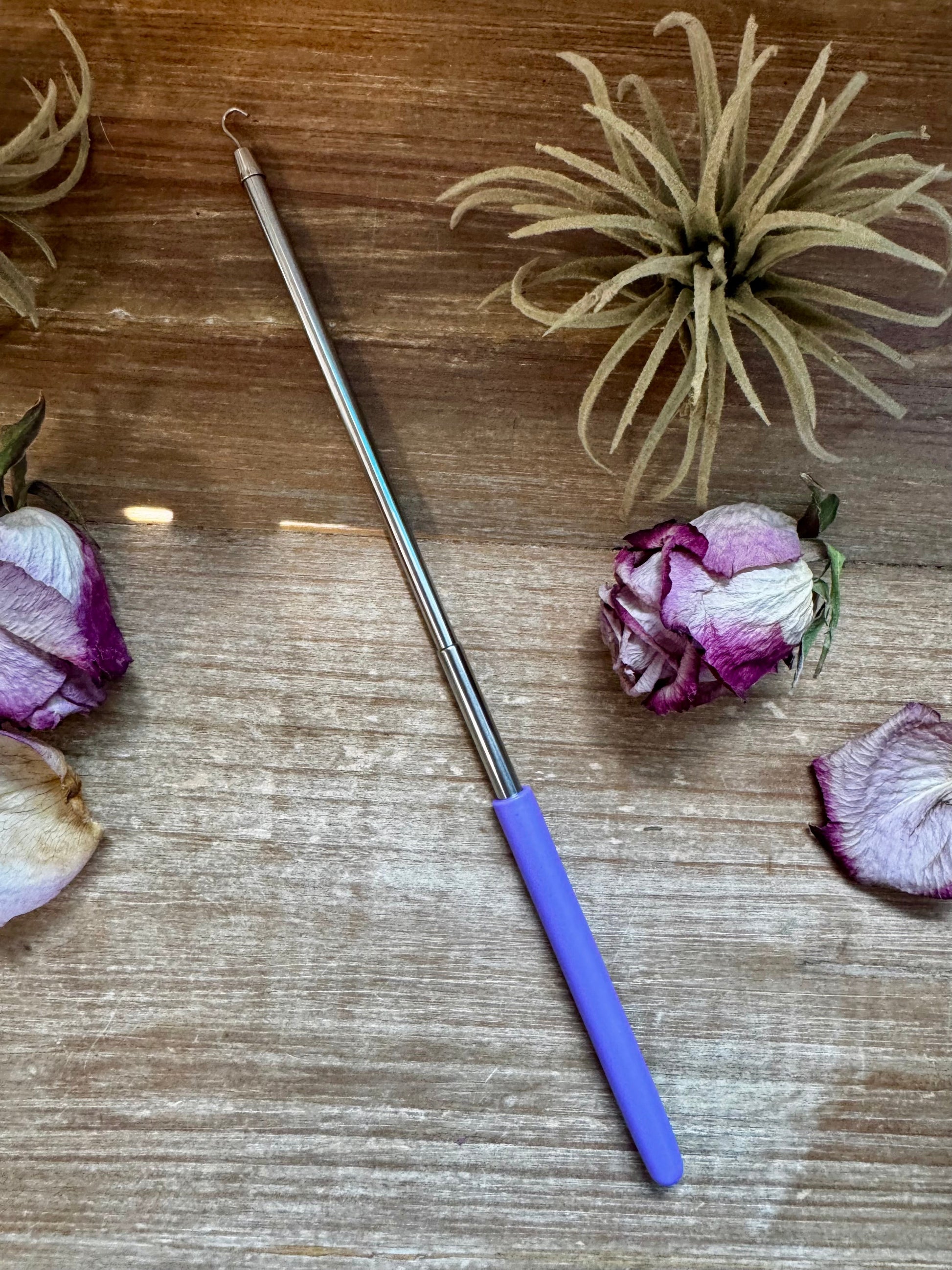 This bracelet helper tool makes it simple to put on any bracelet by yourself — no extra hands needed! Designed with a small hook system, it securely holds one side of your bracelet while you fasten the clasp with ease. Perfect for all of our bracelets (which come with clasps), this tool saves time and makes daily wear effortless. Available in 5 fun colors, so you can pick your favorite.