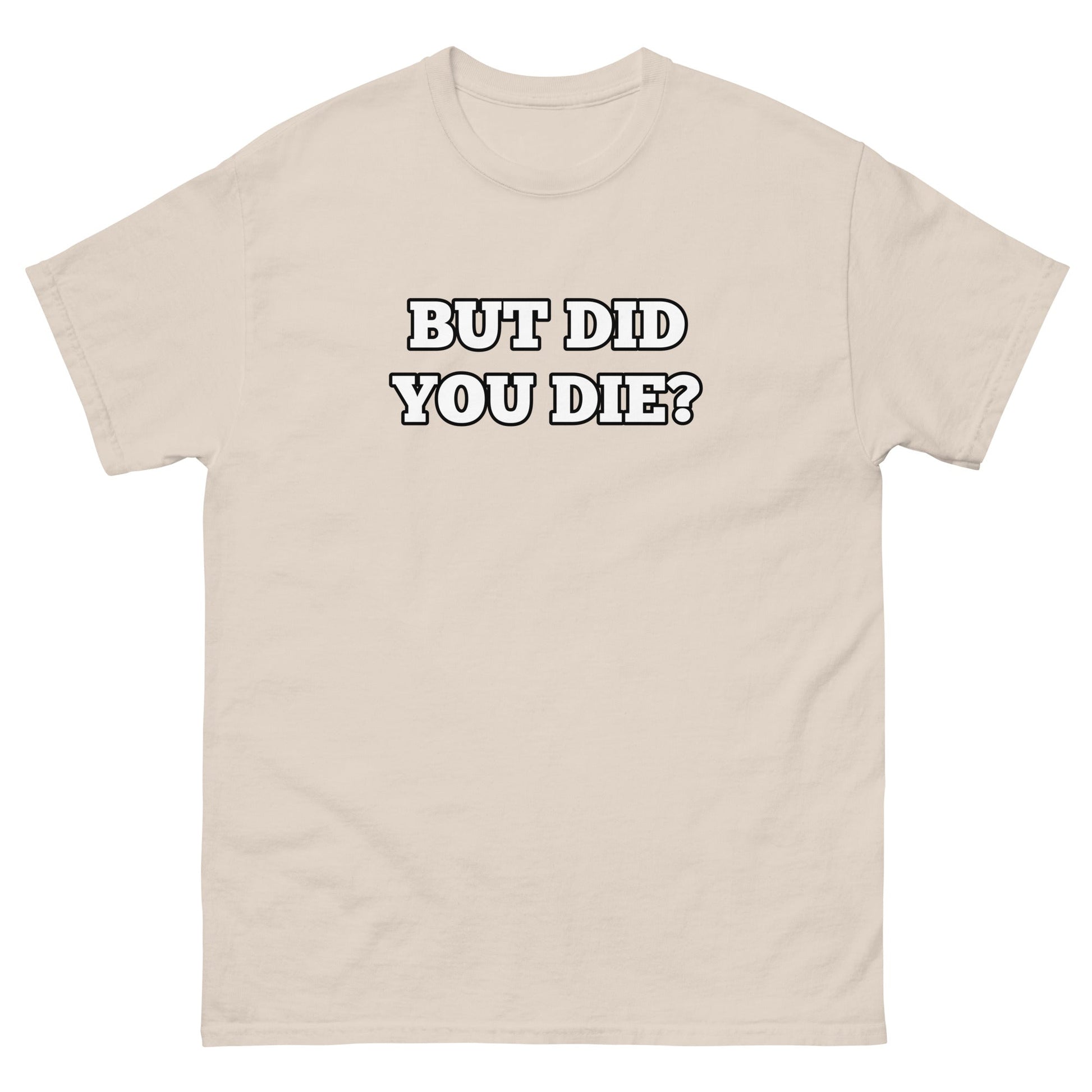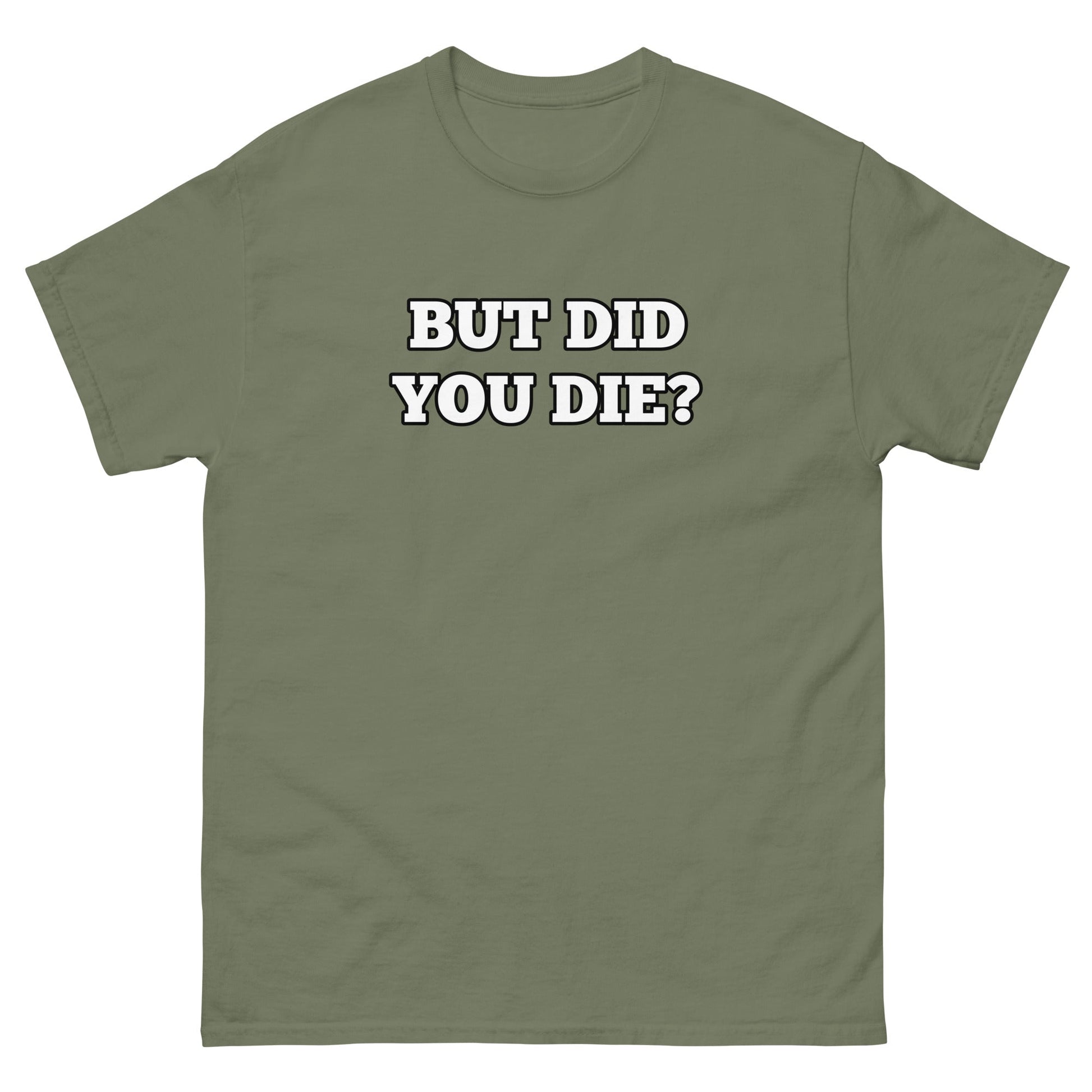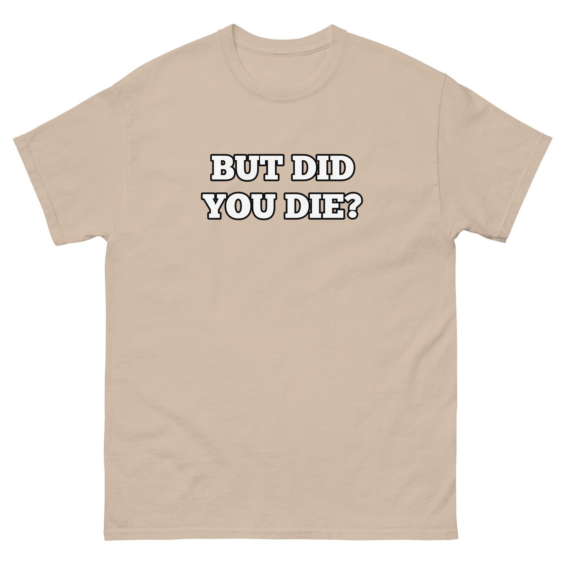 This playful men's tee features the humorous saying "But Did You Die?"—a lighthearted reminder that no matter the challenge, you'll be okay. Crafted from quality materials, it offers comfort and durability, making it perfect for dads who appreciate a good laugh and a casual, confident style.