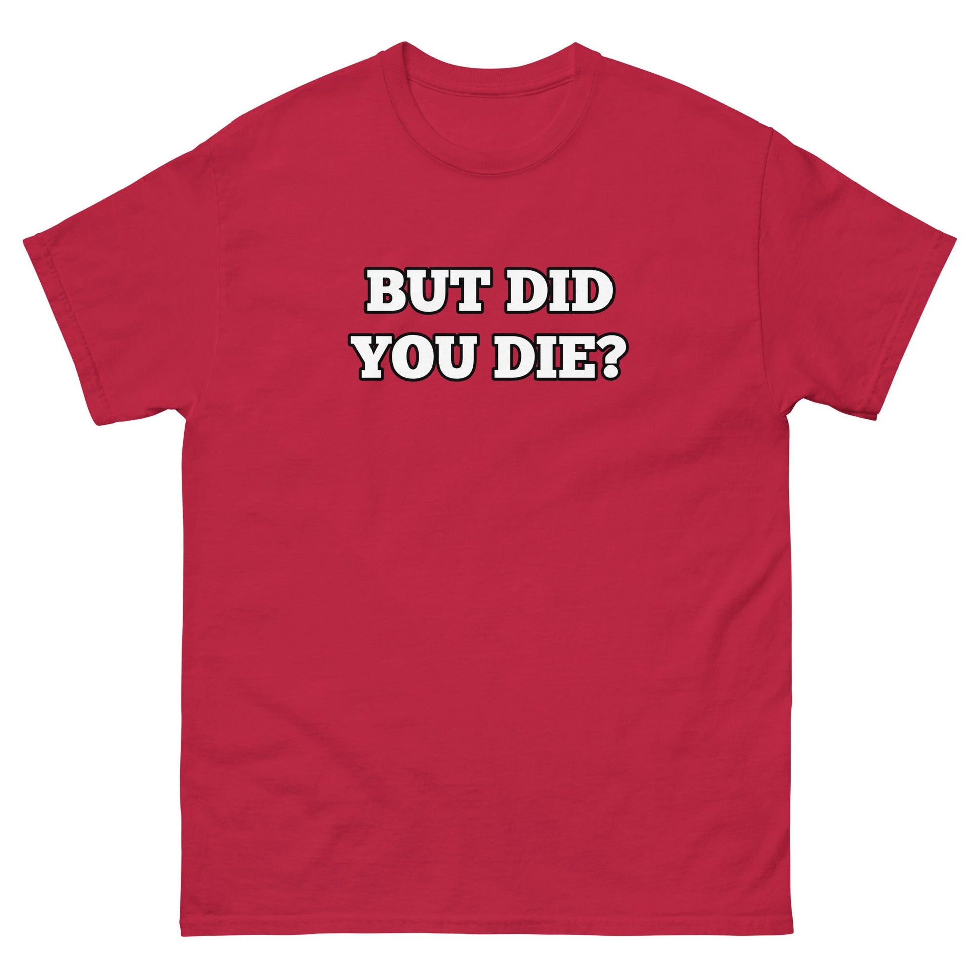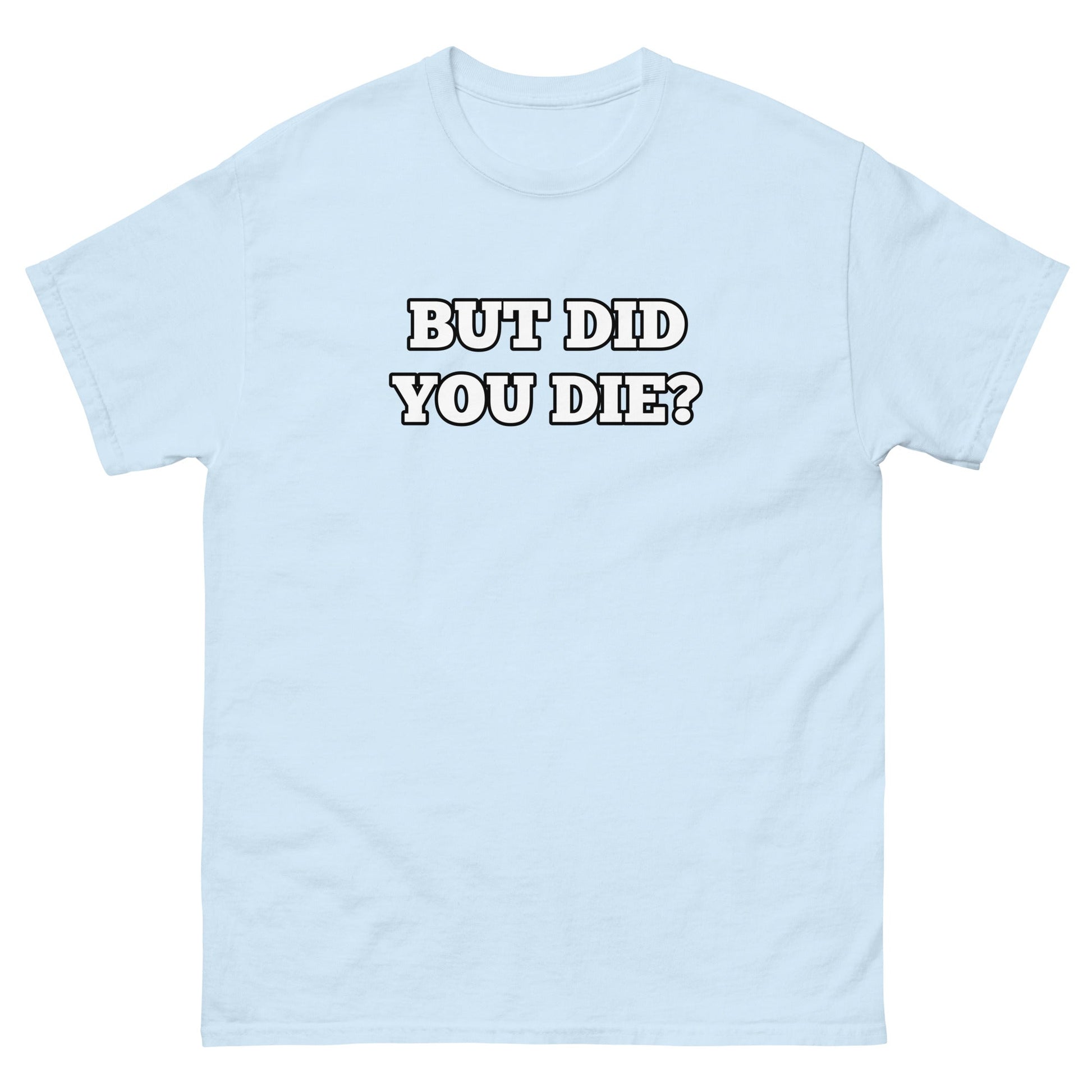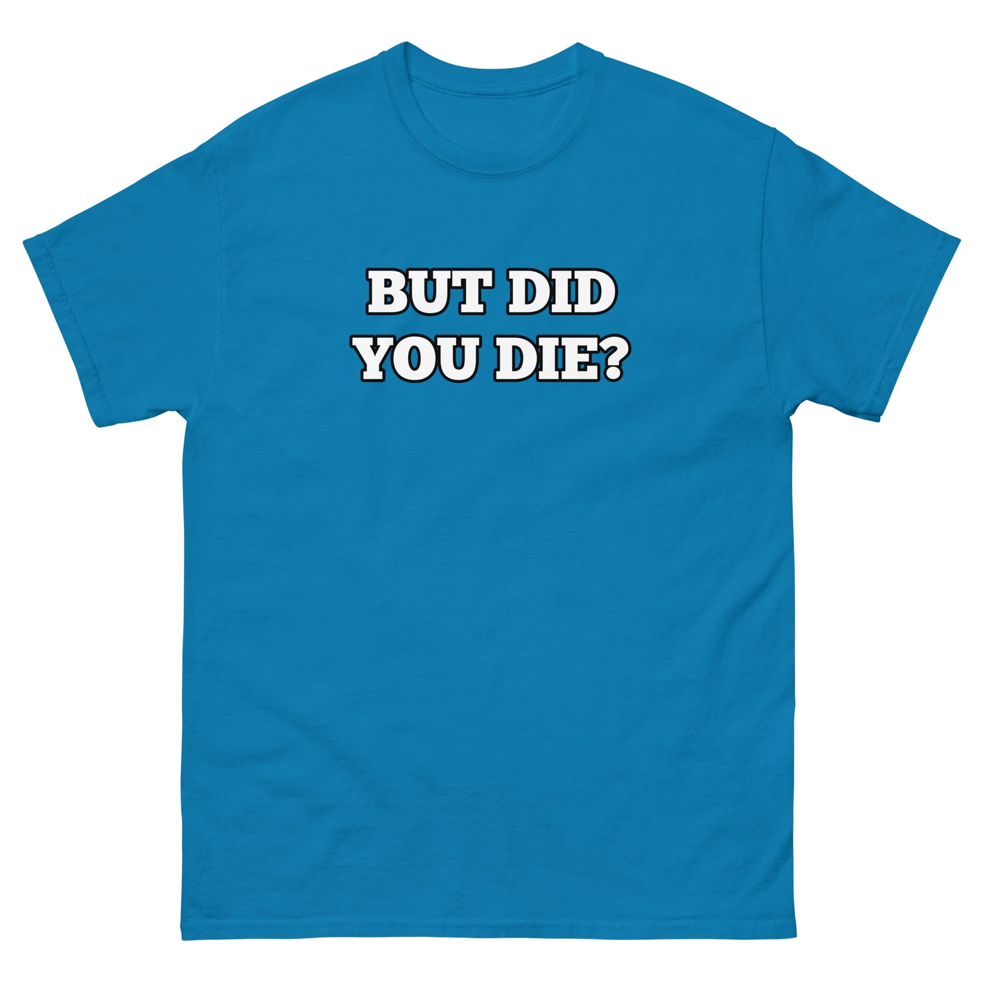 This playful men's tee features the humorous saying "But Did You Die?"—a lighthearted reminder that no matter the challenge, you'll be okay. Crafted from quality materials, it offers comfort and durability, making it perfect for dads who appreciate a good laugh and a casual, confident style.