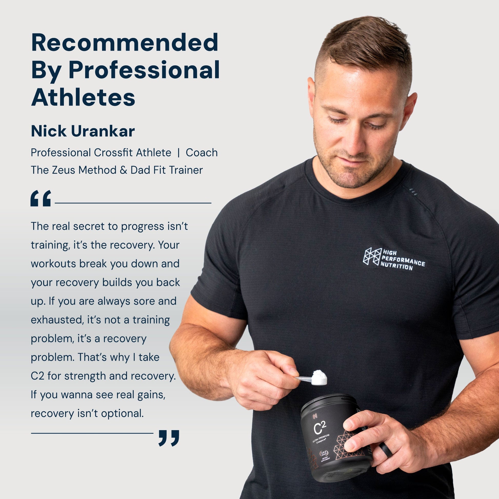 High Performance Nutrition uses 100% Creapure® Creatine for C2 because it is the only creatine we trust for our customers and athletes. Creapure® Creatine is clinically proven to increase strength and endurance by 30% and decrease muscle lactic acid accumulation and fatigue by 70%. Research also shows that C2 increases strength and brain health and eliminates water retention and bloating. C2 does this by increasing the phosphocreatine stores for greater ATP availability during exercise and activity. C2 is 100% safe and effective not only athletes, but also for everyone else. If you want to increase size and strength you need C2 Creapure® Creatine.