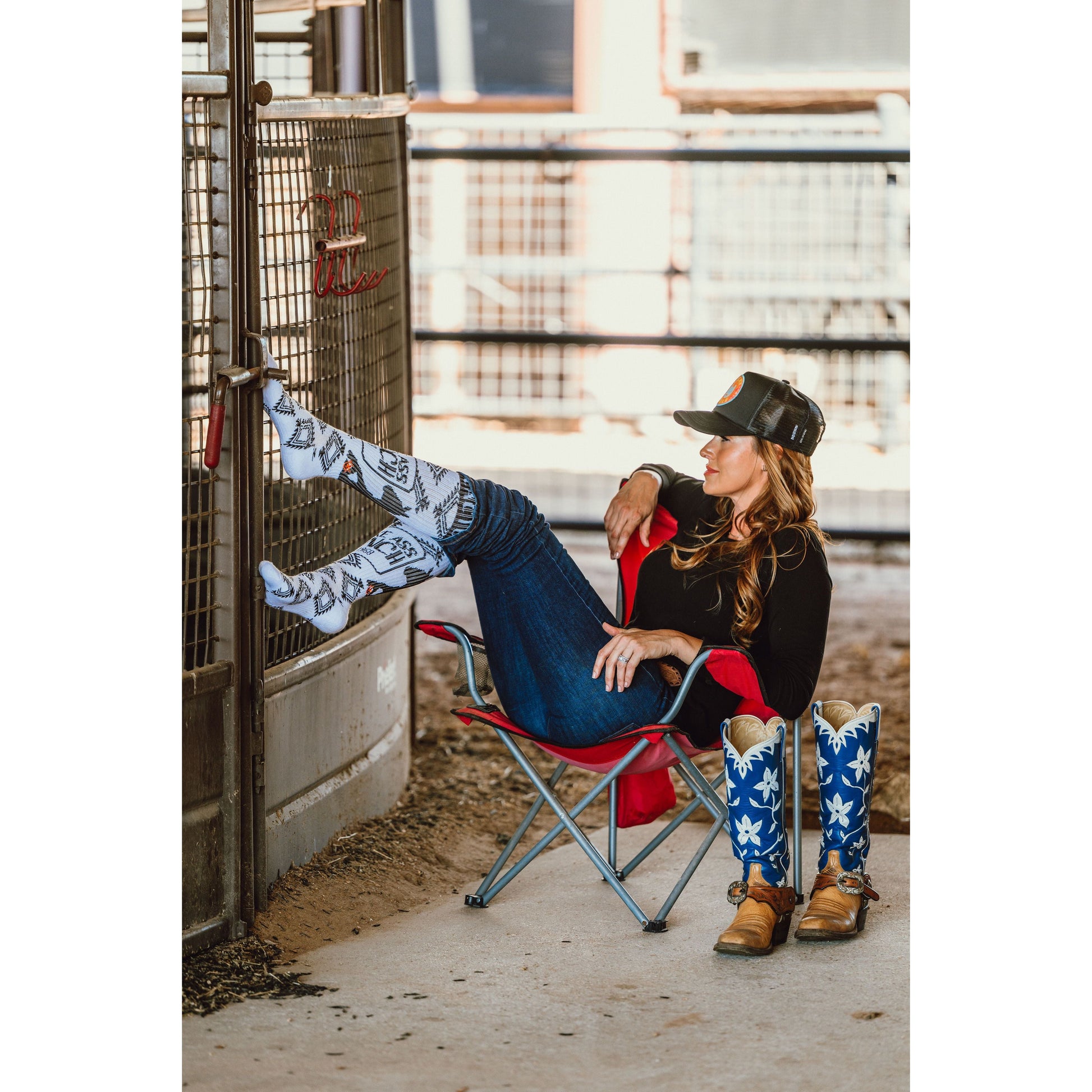 Under the creative vision of head cowgirl Lorinda Van Newkirk, Lucky Chuck® Performance Socks deliver on both style and functionality. These riding essentials are tall enough to protect your calves, stay up all day, and never cut off circulation. Plus, they soften with every wash without wearing out—giving you even more chances to rock your lucky socks every day.