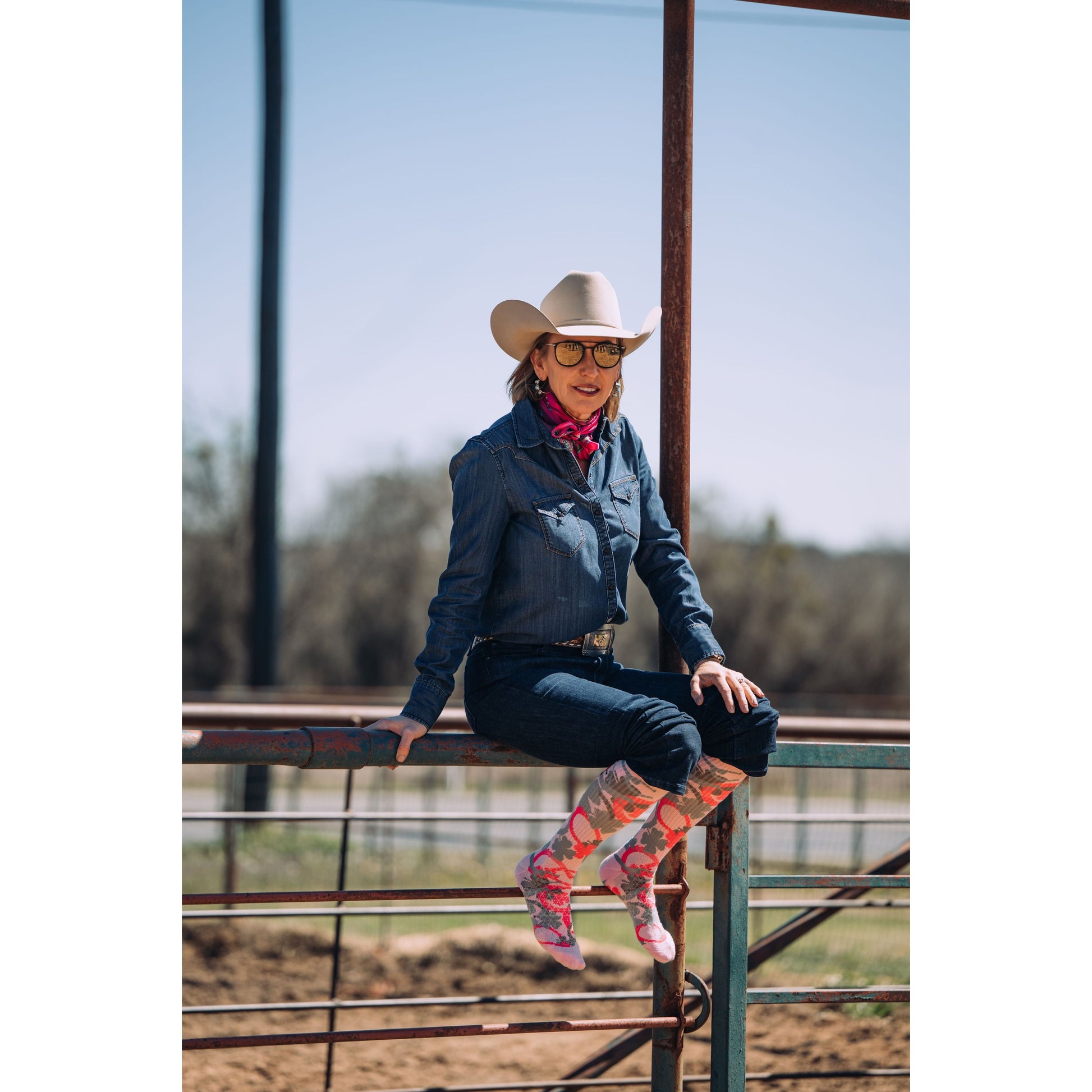 Designed by head cowgirl Lorinda Van Newkirk, it’s no surprise these riding essentials come pack with style and well-thought-out design. They are tall enough and stay up to protect your calves and never cut the circulation off. Lucky Chuck Performance Socks softens with every wash, but without wearing out ~ meaning even more chances to wear your lucky socks every day. Everyone deserves to wear a pair of LUCKY Chuck SOCKS!!