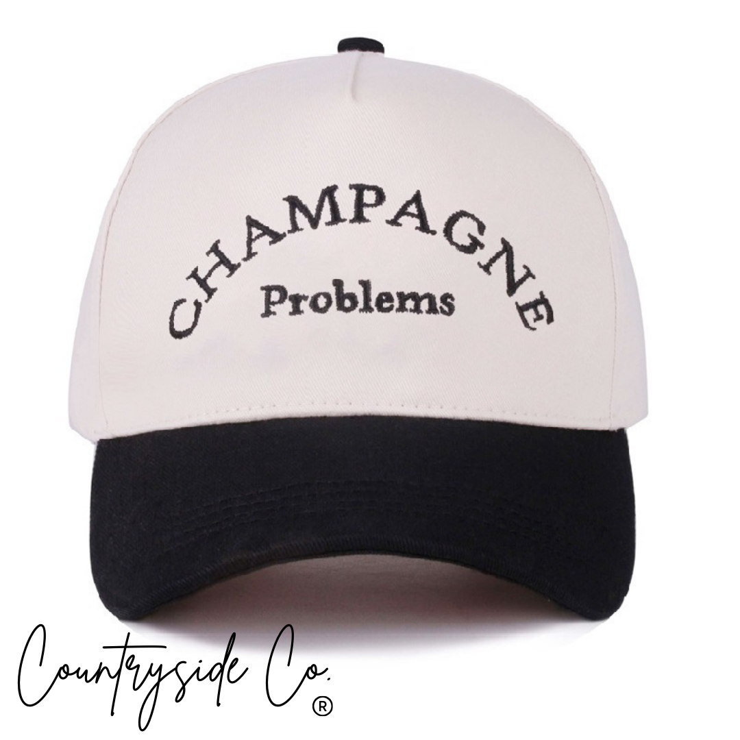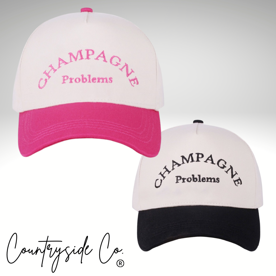 Keep your style sharp with the Champagne Problems Trucker Hat! This lightweight, breathable two-tone cotton cap is built for all seasons. Its bold design and adjustable metal buckle strap deliver a perfect fit while injecting a fearless vibe into every outfit. Dare to be noticed wherever you go!
