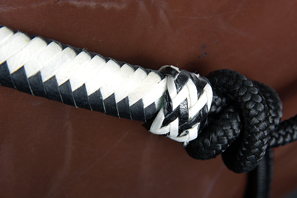 Product ID: CE-HALTERRNBKWH -- Durable nylon body is long-lasting and UV resistant. Braided rawhide noseband adds feel and traditional appeal. Available in many colors for all horses and rider preferences