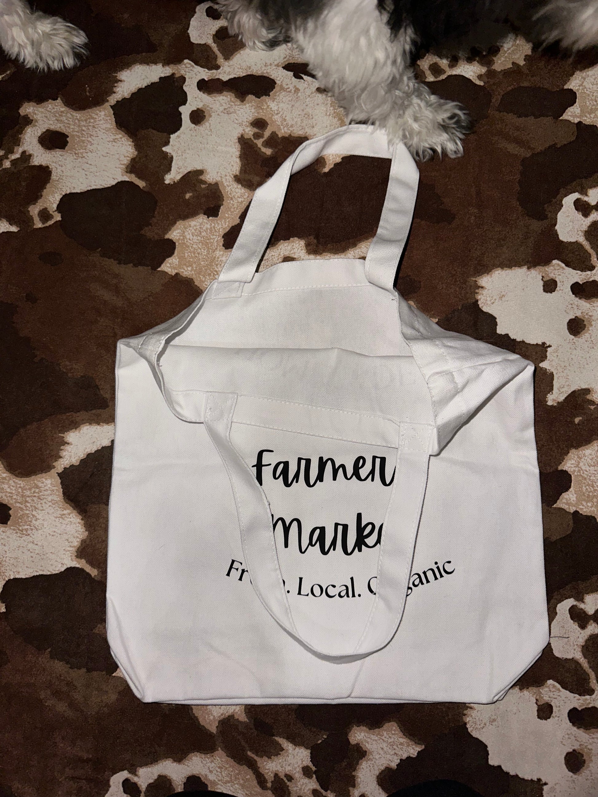 Bring a little country charm with you wherever you go with our Cluck & Carry tote! This adorable canvas bag features a rustic black chicken silhouette with “Homemade Farmer’s Market – Fresh. Local. Organic.” printed in a stylish farmhouse font. Perfect for trips to the farmer’s market, grocery store, or anywhere you need a durable and darling carryall.