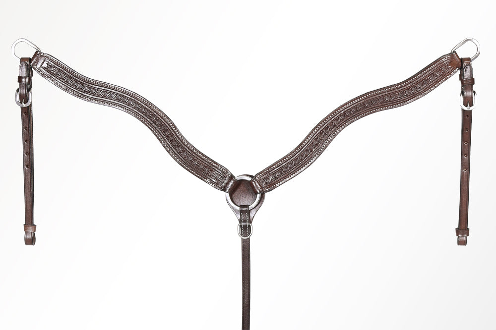Every detail of this saddle showcases masterful craftsmanship, from the intricate tooling to the polished finish that exudes elegance. Lightweight yet sturdy, it offers enhanced control and agility, making it a perfect companion for competitive riders seeking top-tier performance. To complete the look and functionality, this set includes a beautifully coordinated tack ensemble featuring a matching headstall, reins, and breast collar. Designed not only to complement the saddle’s aesthetic but also to ensure reliable performance, this set is as practical as it is stylish.
