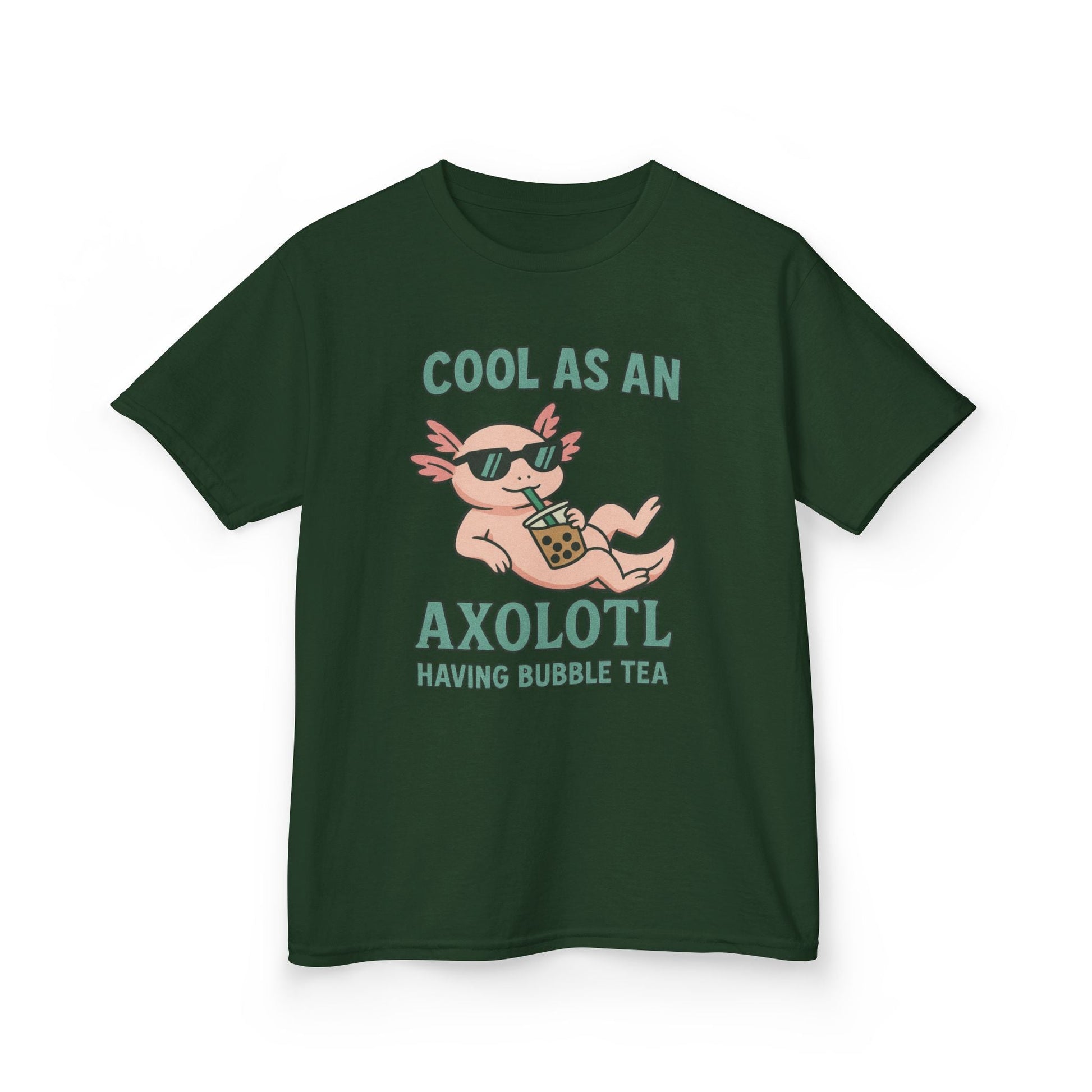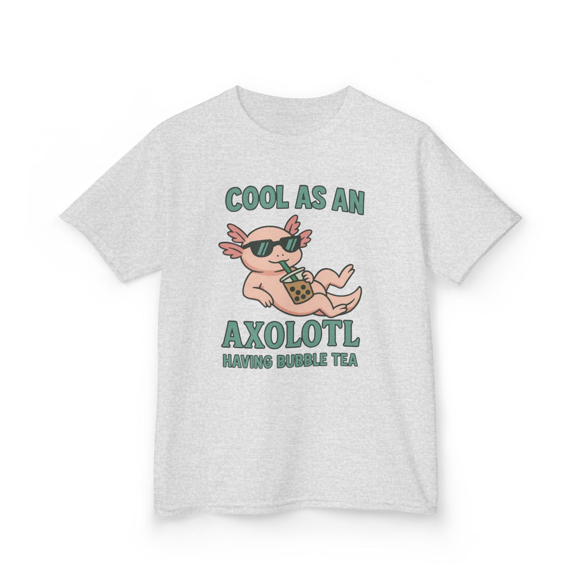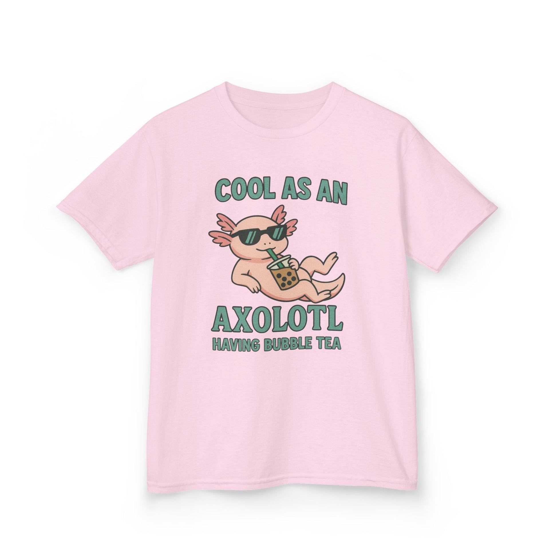 Cool as an axolotl having bubble tea shirt, cool vibes t-shirt, suitable for boys and girls who are into streetwear and hip styles. Perfect for casual wear and adding a touch of personality to everyday outfits. Relevant for kids, ideal for birthdays, casual occasions, and everyday wear.
