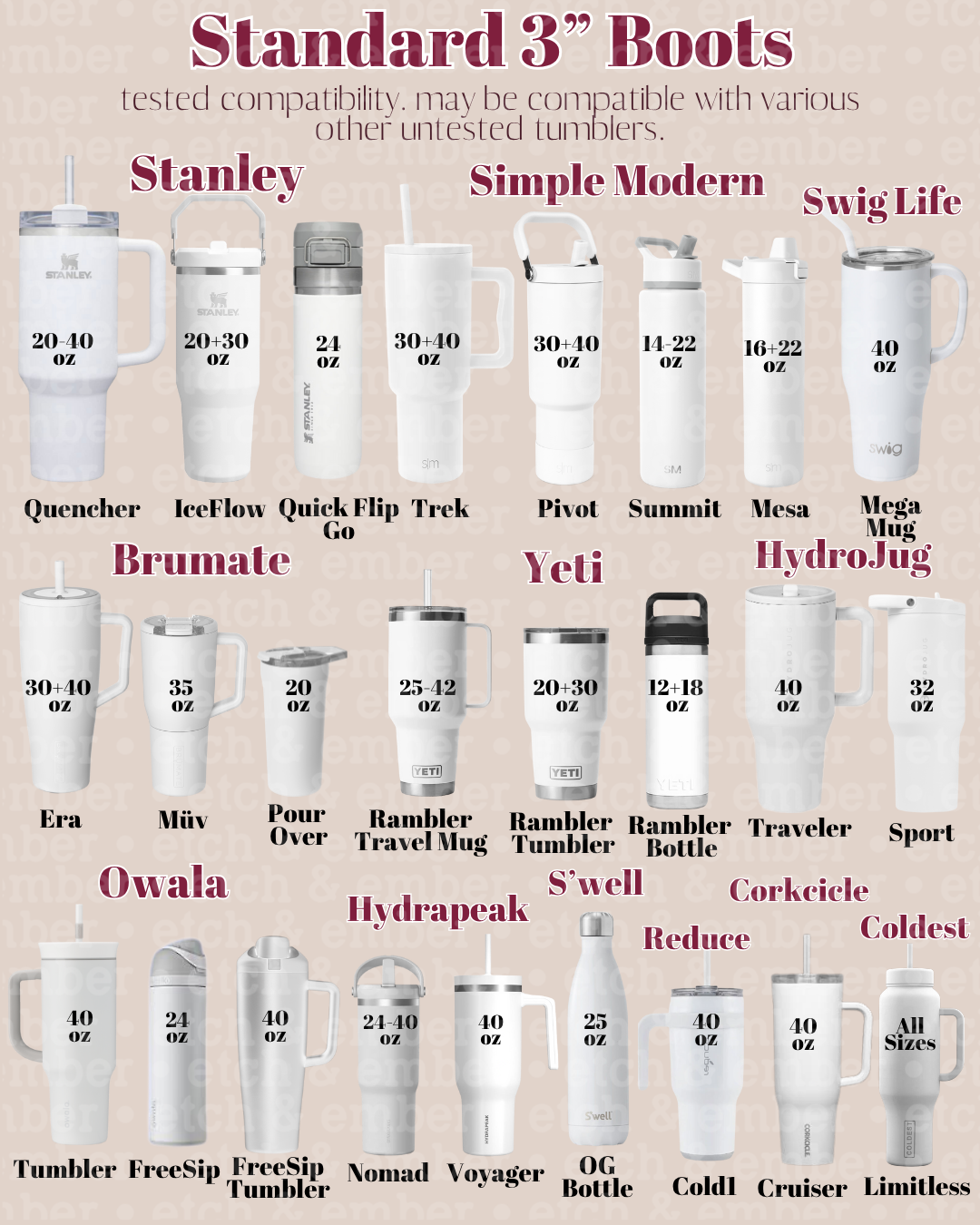 Enhance the durability of your favorite tumblers with our Silicone Tumbler Boots – a perfect blend of style and functionality! Please note that orders for these protective boots cannot be canceled or changed once placed. For further details, we encourage you to review our refund policy. Safeguard your tumbler in style and make a lasting investment in practicality today!